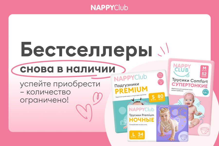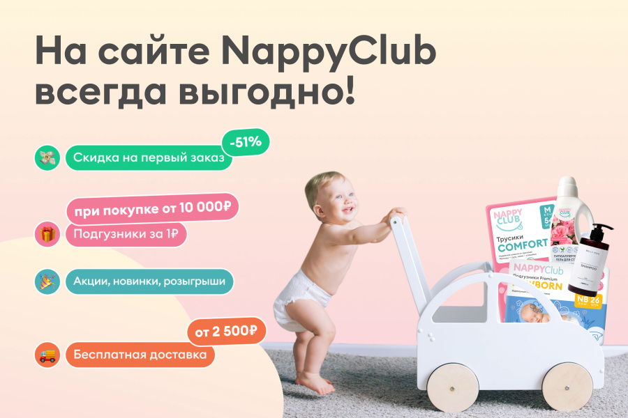 Эти товары доступны к заказу при покупке подгузников или трусиков NappyClub. Добавьте их, пожалуйста, в корзину.
