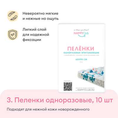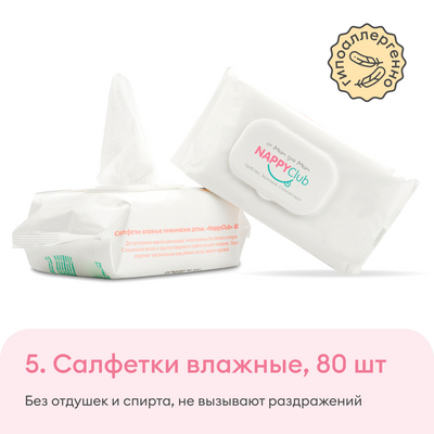 Данный набор необходимо покупать отдельно. На остальные товары NappyClub совместно с пачкой любых подгузников или трусиков вы можете оформить новый заказ.