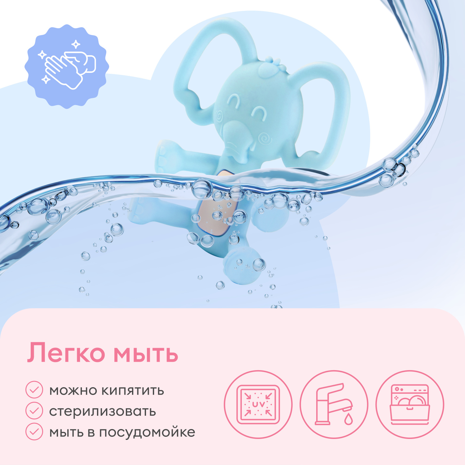 Уход: Перед первым применением помыть. Подойдут любые способы стерилизации. Можно мыть в посудомоечной машине и стерилизовать кипячением. Сохраняет цвет и форму даже при высоких температурах. Для мытья прорезывателя рекомендуем использовать Гель для мытья детской посуды и игрушек NappyClub
