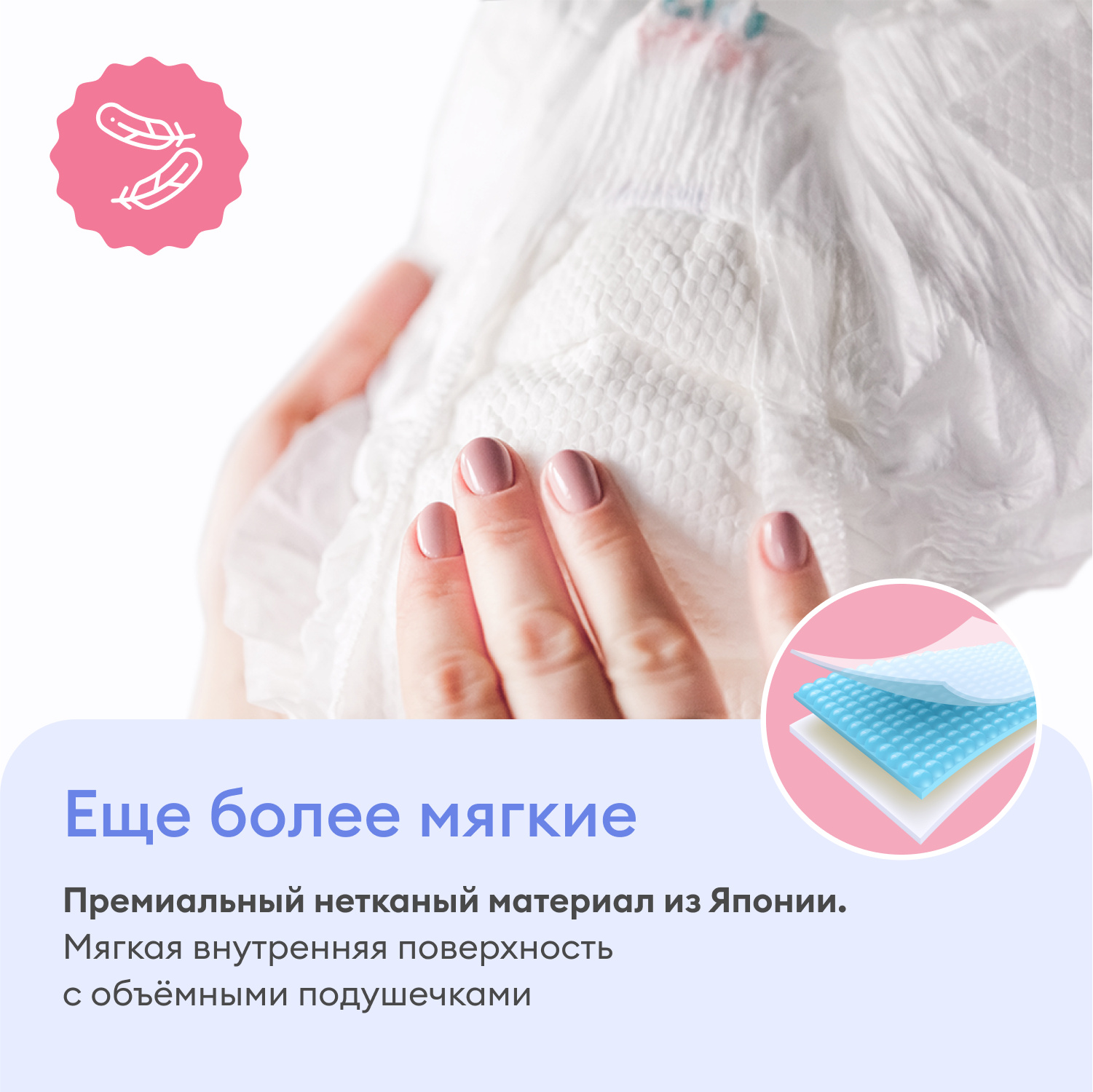 Мягкие манжеты для ножек с двойной 3D защитой от протекания. Анатомическая конструкция трусиков обеспечивает максимальный комфорт малышу