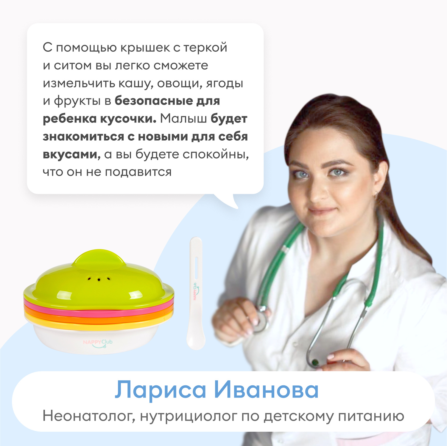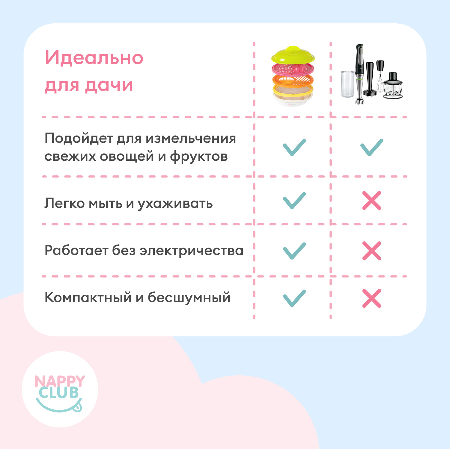 Набор для приготовления прикорма NappyClub с теркой - новейшее изобретение созданное, чтобы облегчить уход за ребенком и сэкономить время молодой мамы. С ним первый прикорм станет значительно легче, приятнее, а главное - безопаснее.