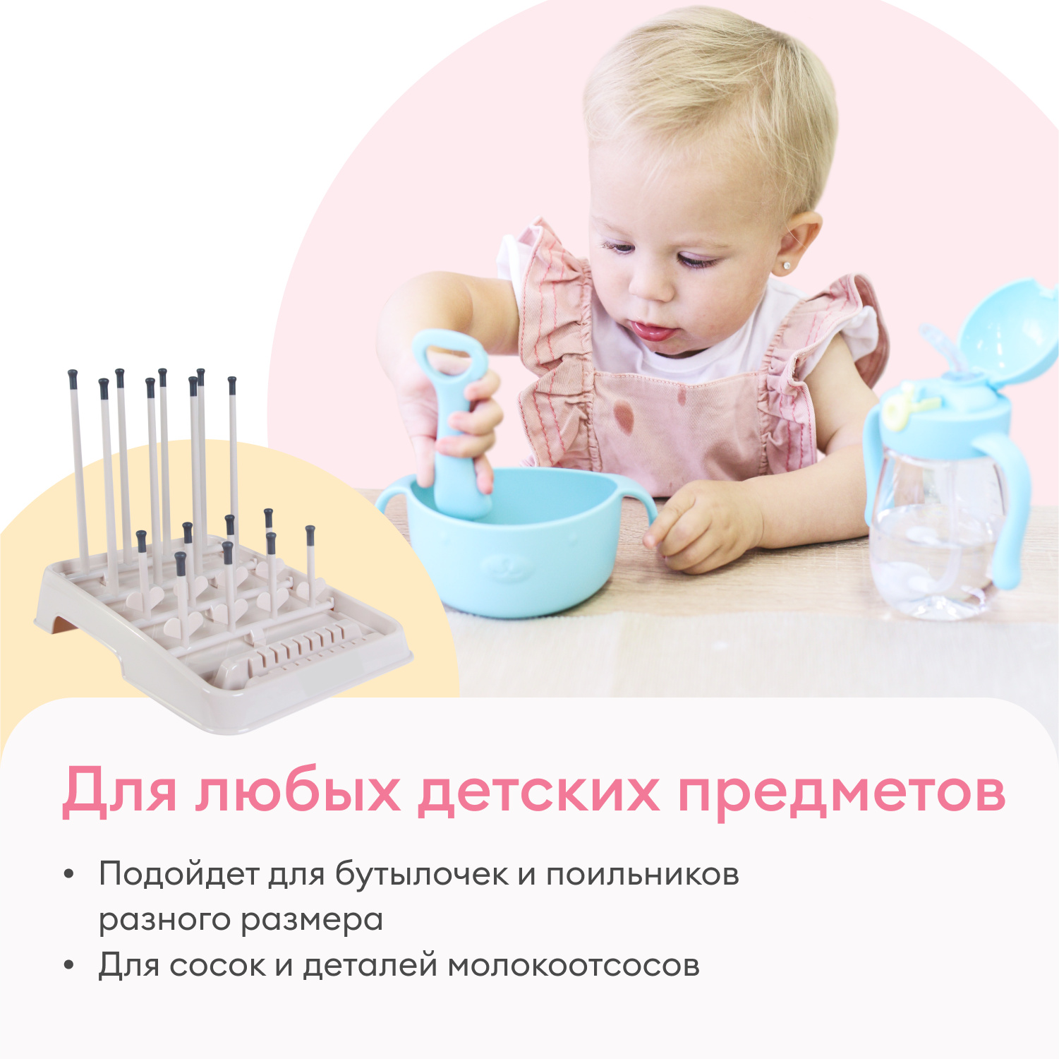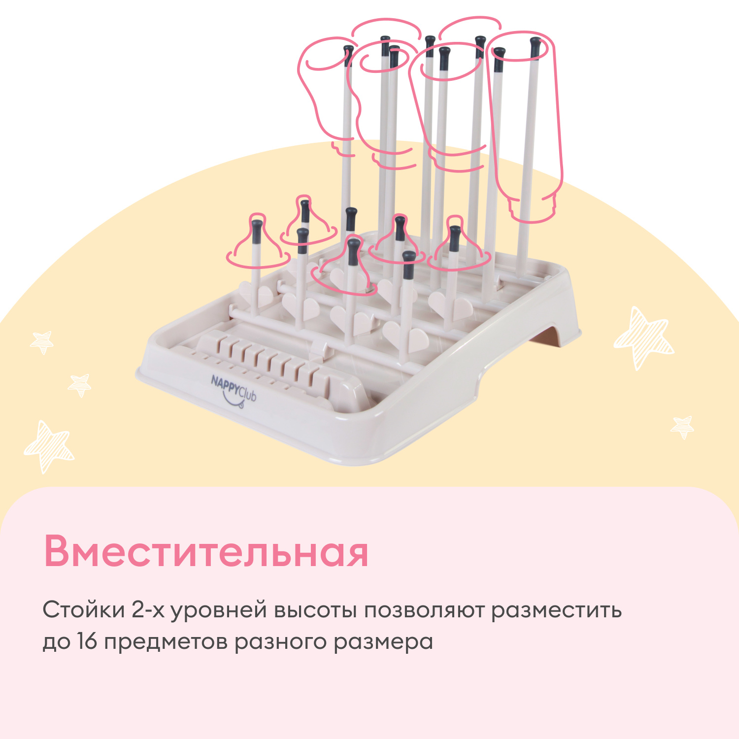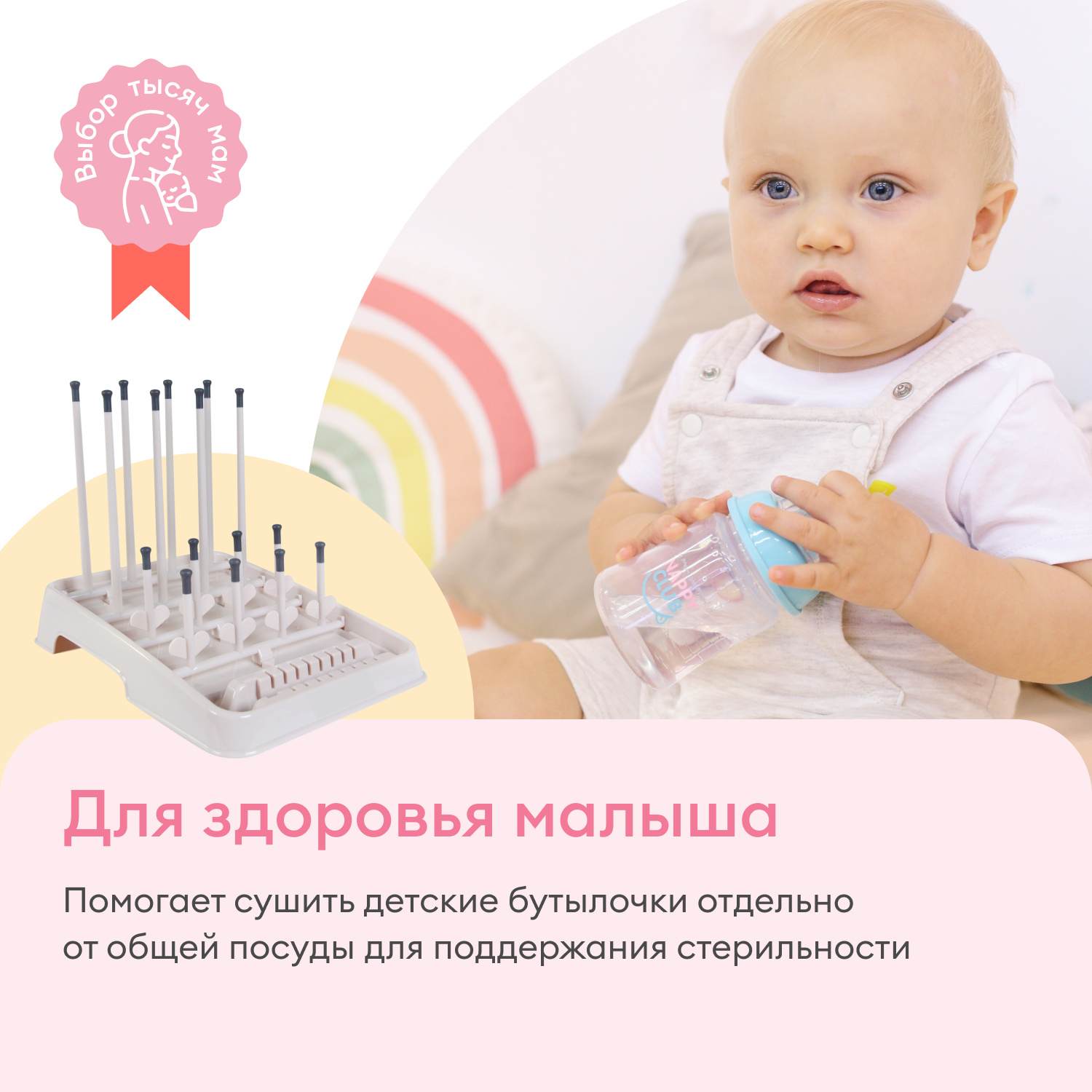 Предназначена для удобной и гигиеничной сушки бутылочек, подходит для бутылочек любого размера
