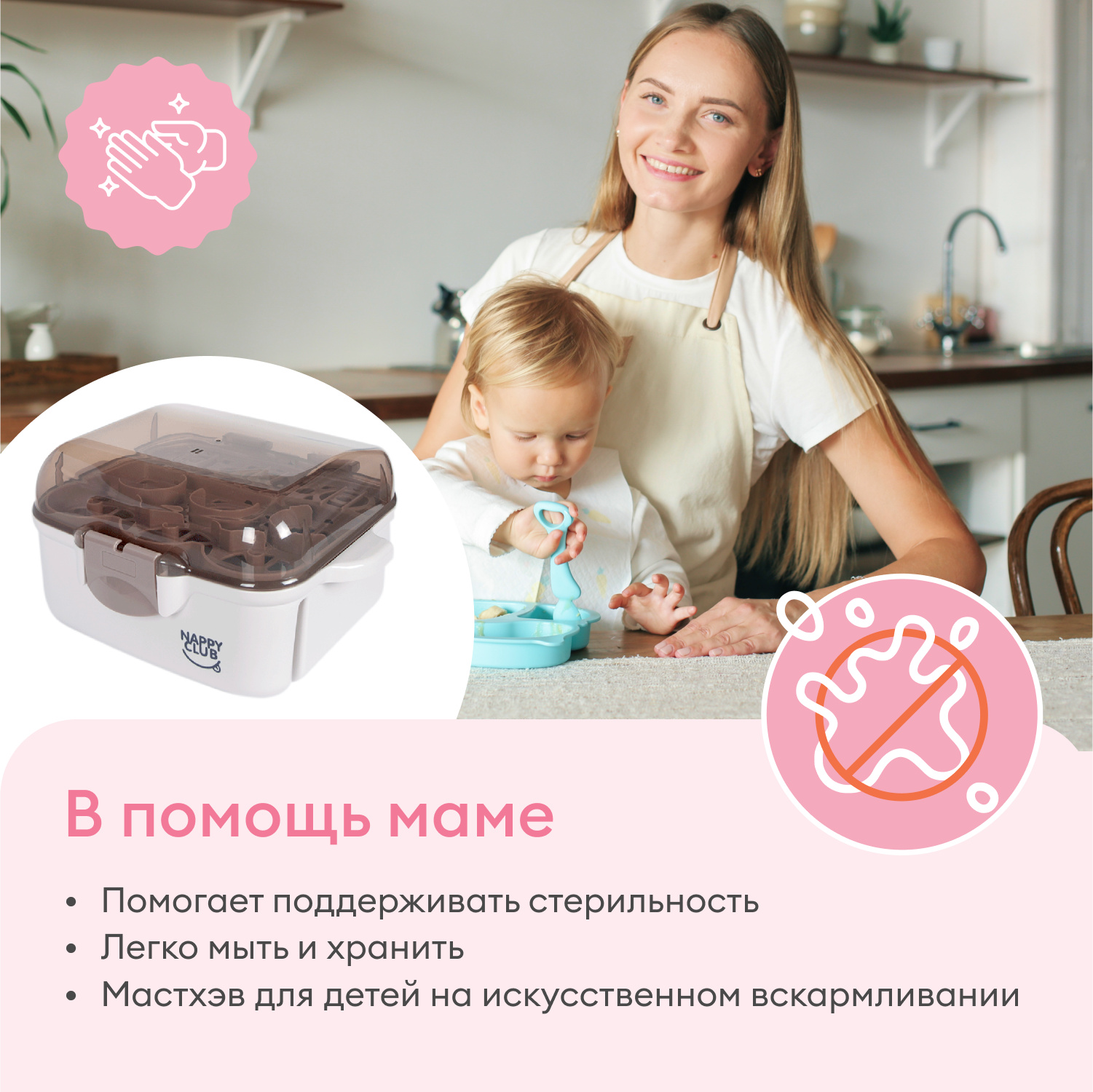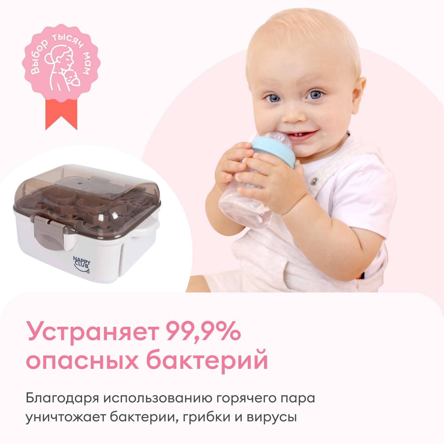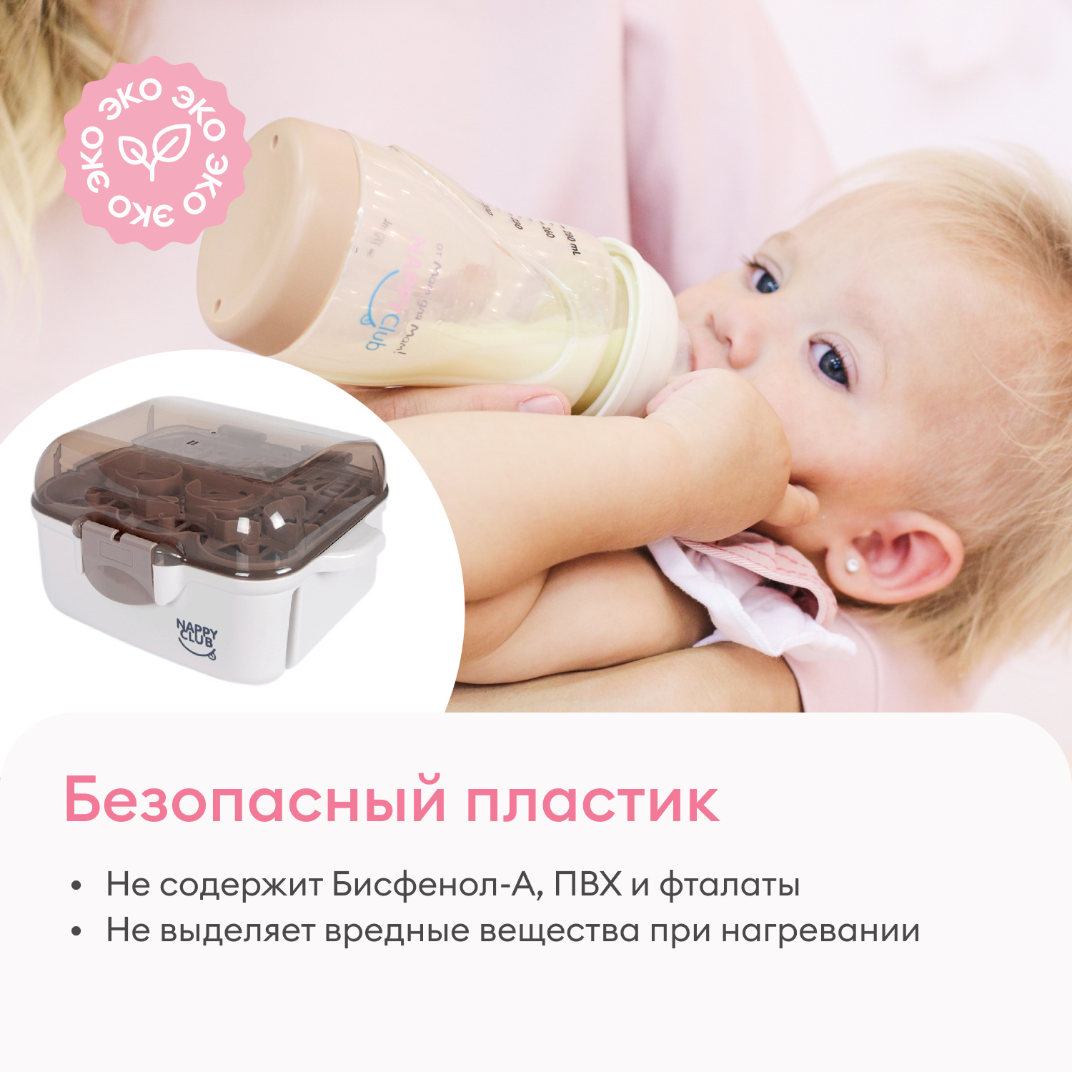 BPA-free: изготовлен из безопасного материала, не содержащего бисфенол-А, не выделяет вредных веществ при стерилизации