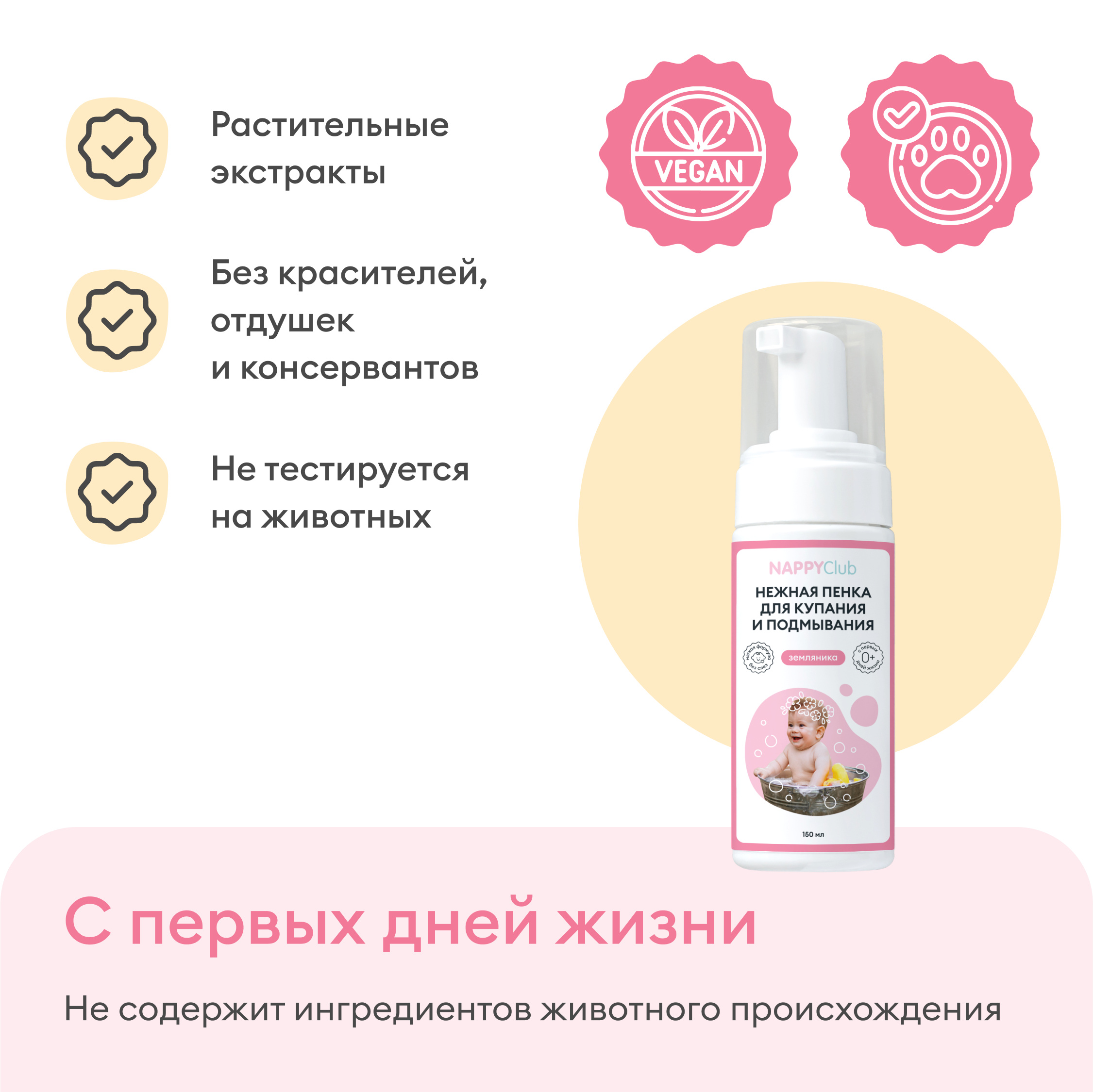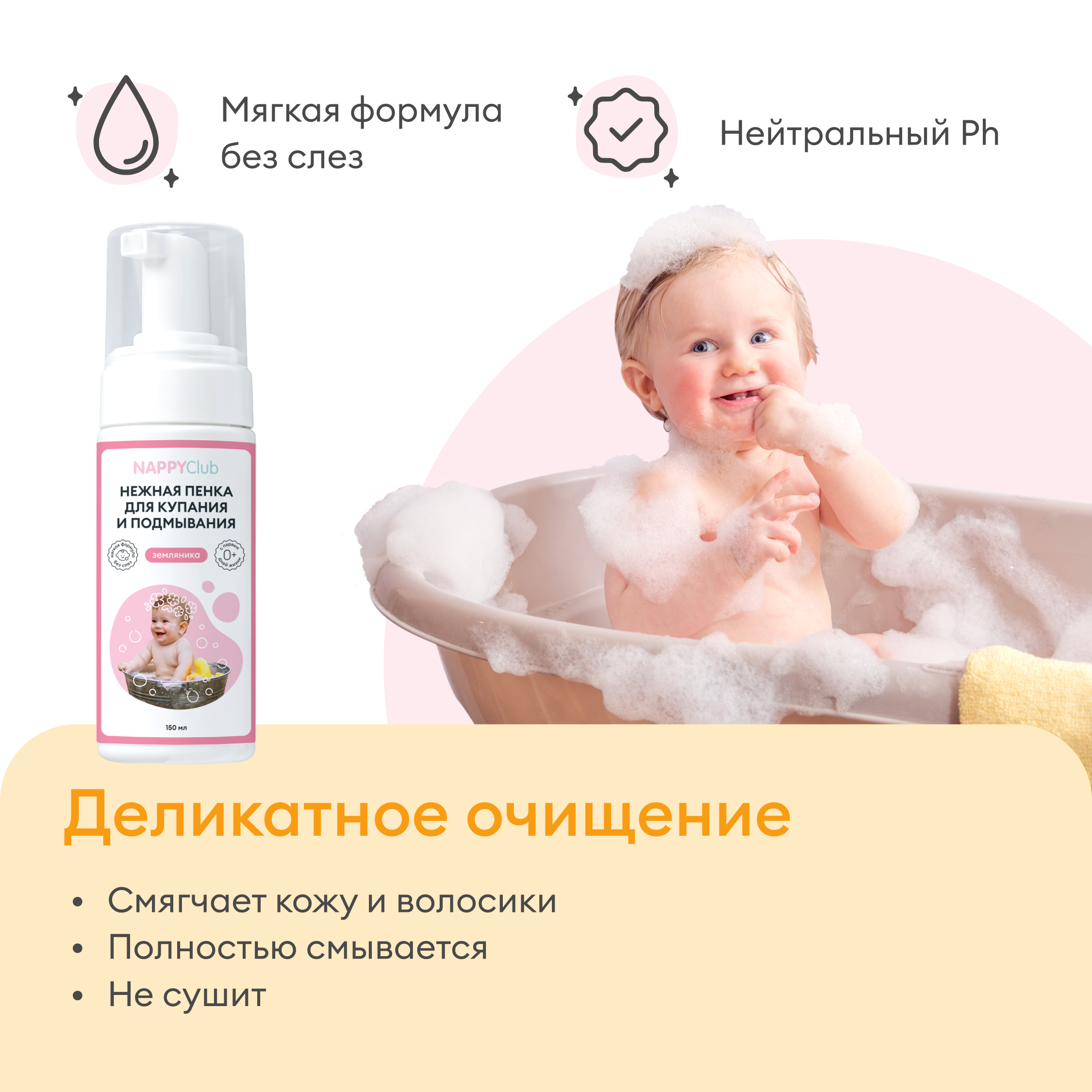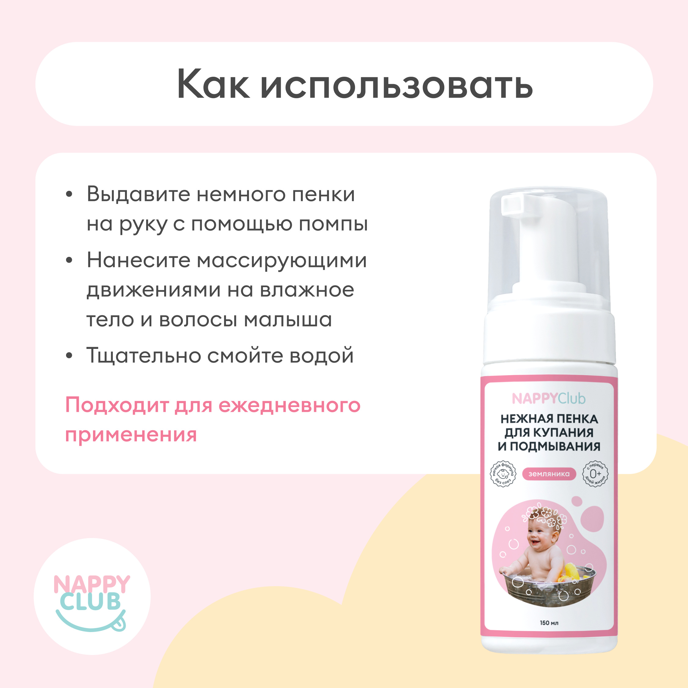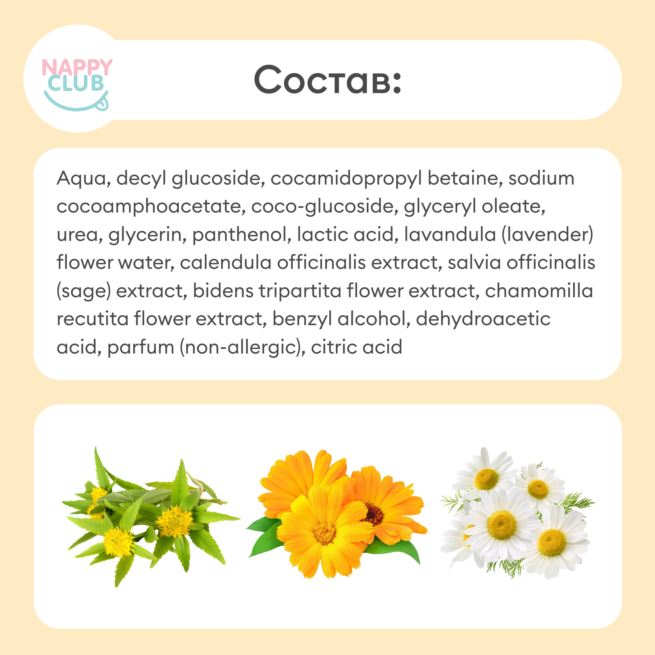 Детская пенка для подмывания и купания NappyClub с растительными экстрактами, витаминами и пребиотиком нежно очищает и отлично подходит для ухода за самыми нежными участками кожи малыша.