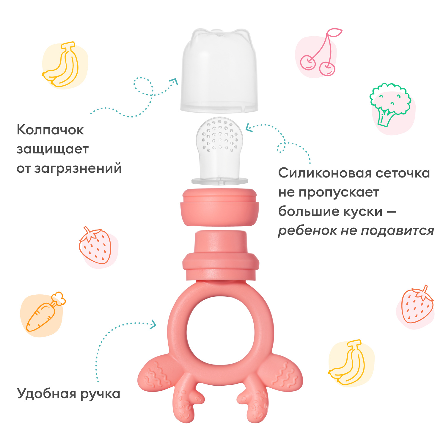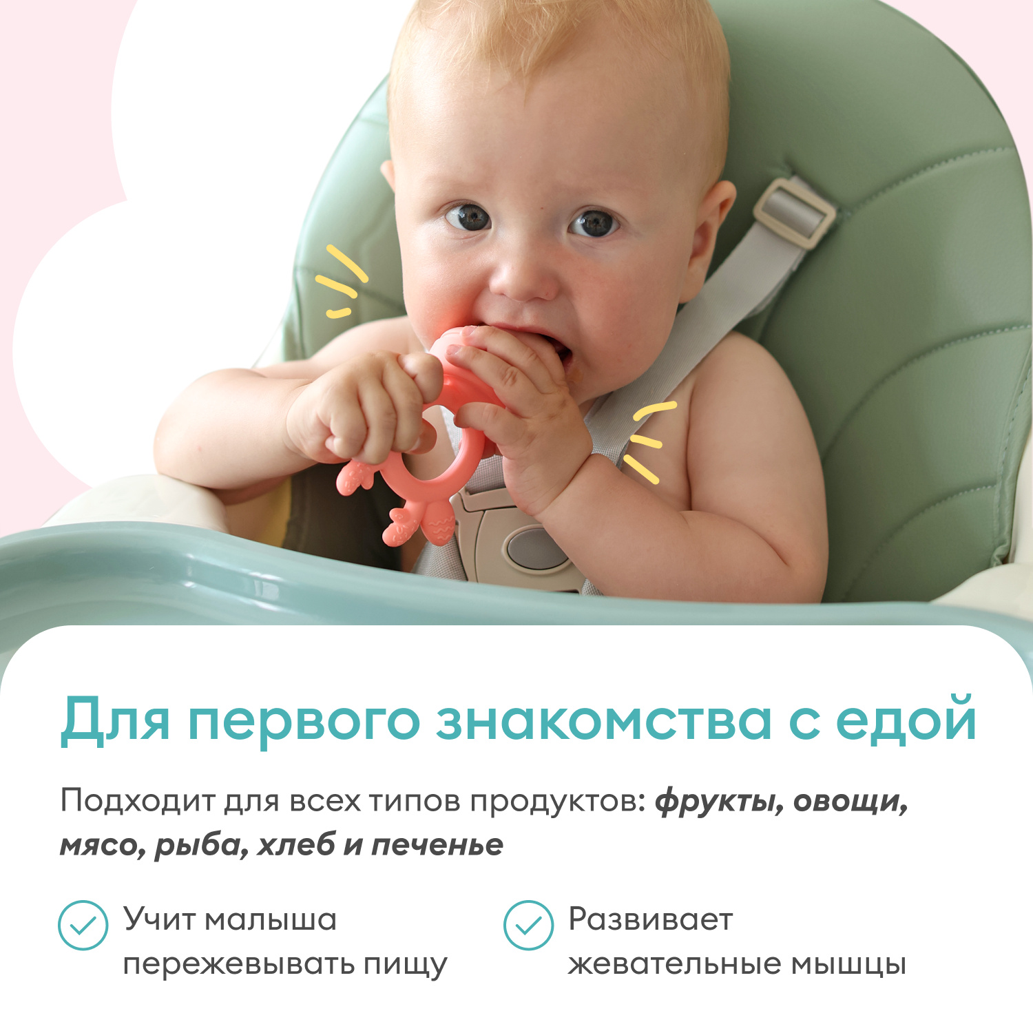 Благодаря сетчатой конструкции ниблер предотвращает риск удушья, позволяя малышам грызть фрукты и овощи не проглатывая большие куски