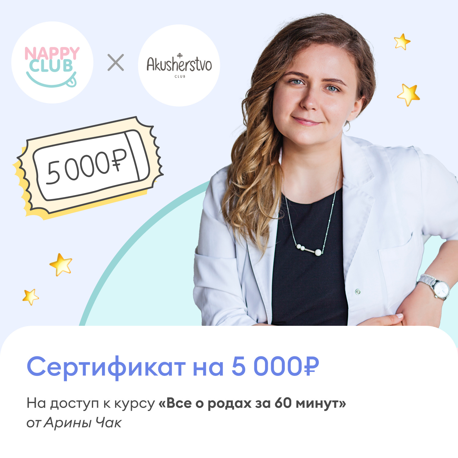 Сертификат на 5000р. — доступ к курсу «Всё о родах за 60 минут от Арины Чак» от Akusherstvo Club