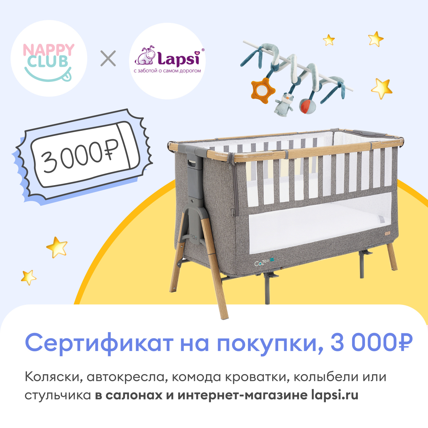 Сертификат на шопинг 3.000р на покупку коляски, автокресла, комода кроватки, колыбели или стульчика в салонах Lapsi и интернет-магазине lapsi.ru (придет в электронном виде)