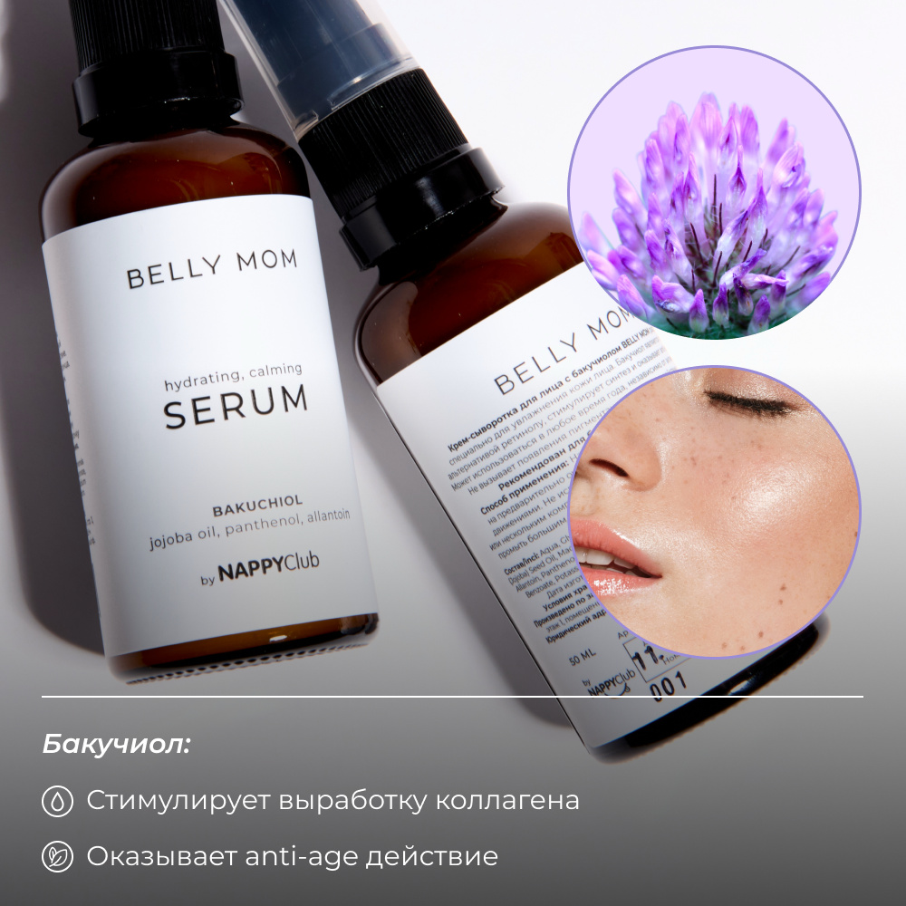 Крем-сыворотка для лица с бакучиолом BELLY MOM разработана специально для увлажнения кожи лица.