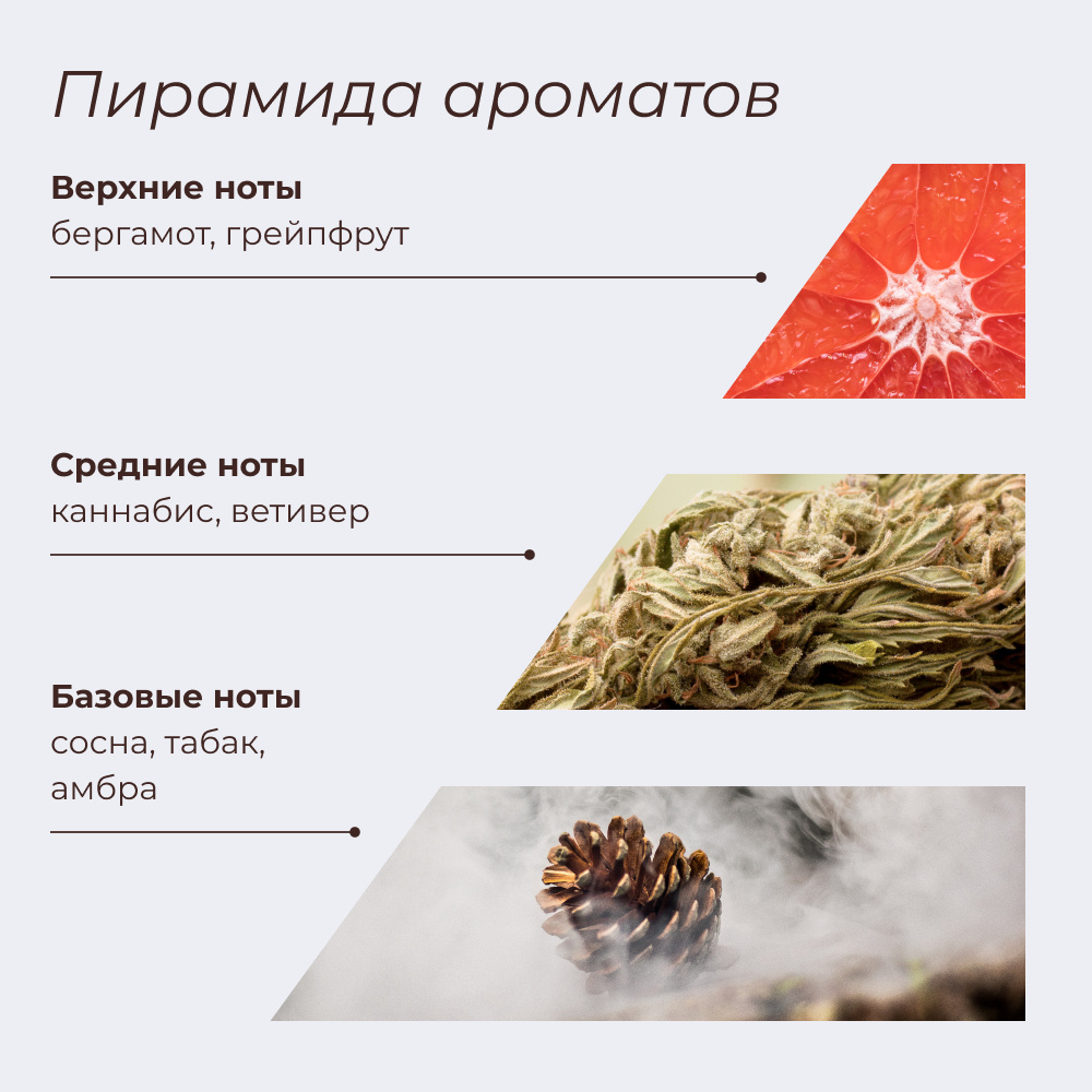 Аромат «Cannabis» характеризуется свежими зелеными нотами и легкой травянистостью, которые могут способствовать ощущению бодрости и повышению энергии. Его интригующий и необычный аромат создаёт атмосферу обновления и стимулирует умственную активность. Важно отметить, что этот аромат не содержит никаких запрещённых или психоактивных веществ и является полностью безопасным для использования. Он помогает будущим мамам поддерживать мотивацию и бодрость во втором триместре, снижая усталость и улучшая общее самочувствие.