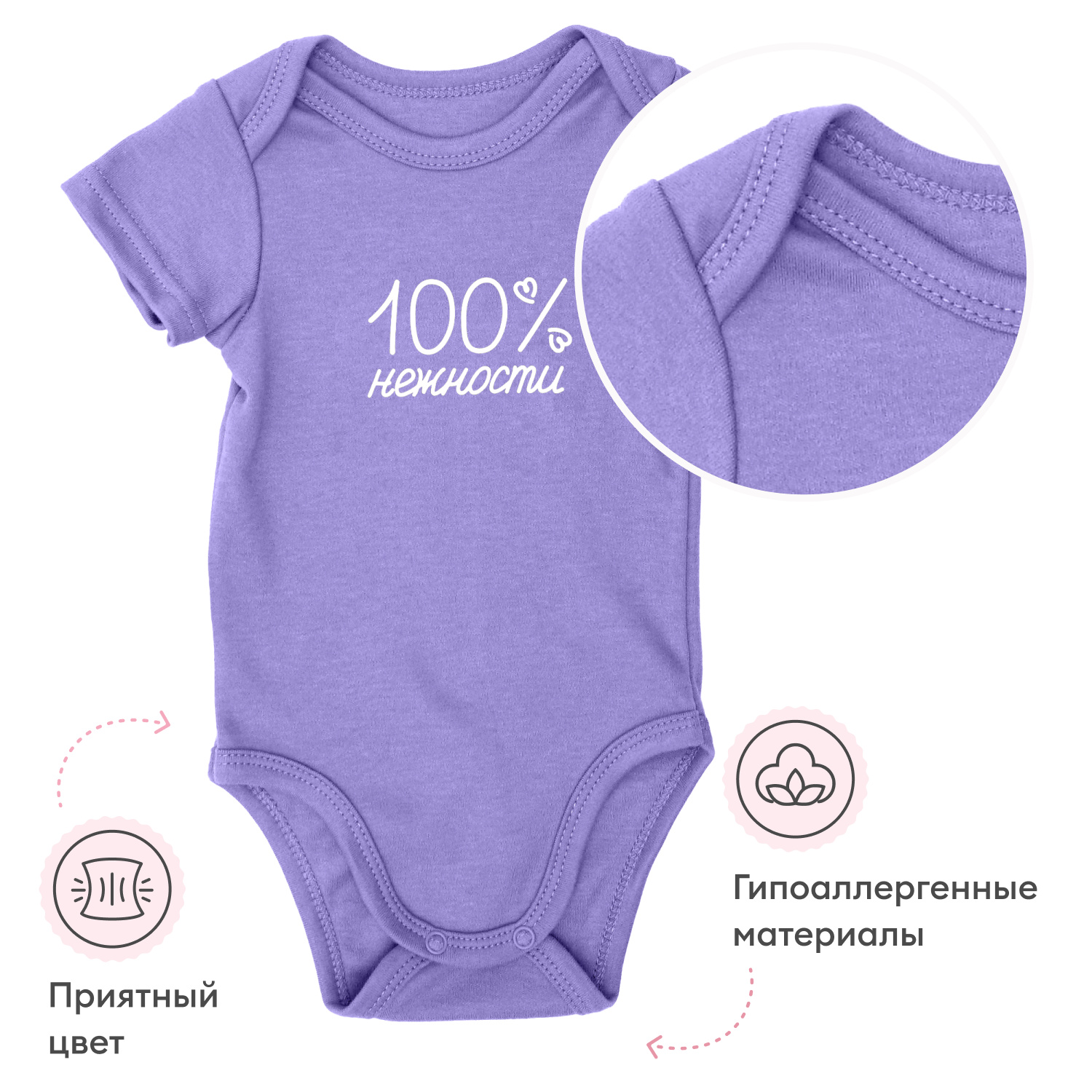 Боди со средним рукавом. 100% нежности (Фиолетовый)