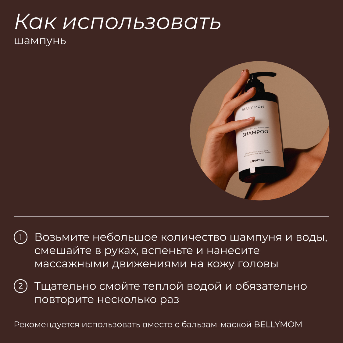 Шампунь для роста волос BELLY MOM от NappyClub разработан специально для мам, которые хотят поддержать рост своих волос и их естественную красоту, а также предотвратить их выпадение. Разработан для женщин после родов с учетом изменений в организме. Восстанавливает здоровье волос после родов, стимулирует рост и густоту.