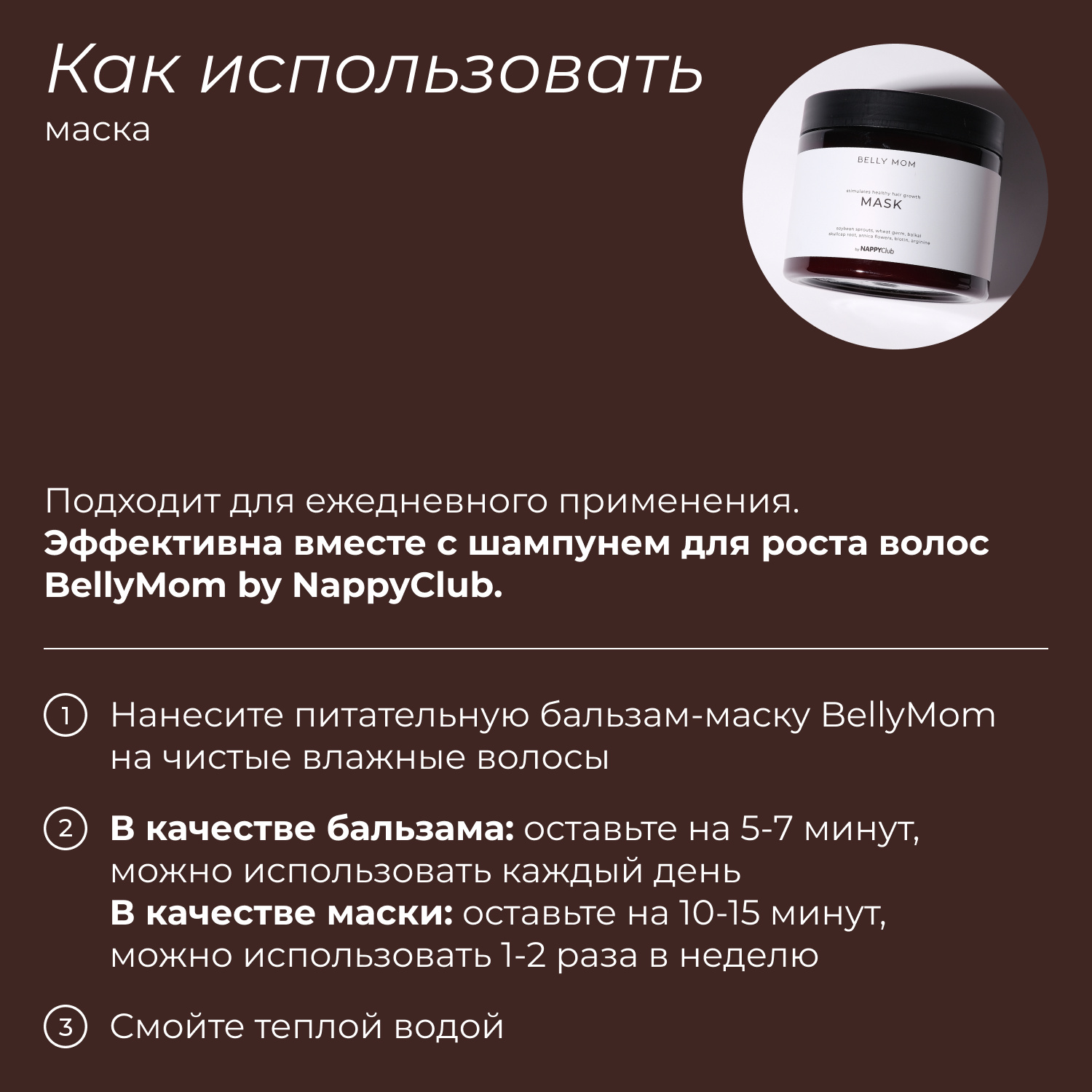 Бальзам-маска для роста волос BELLY MOM от NappyClub разработана специально для мам, которые хотят поддержать рост своих волос и их естественную красоту, а также предотвратить их выпадение.