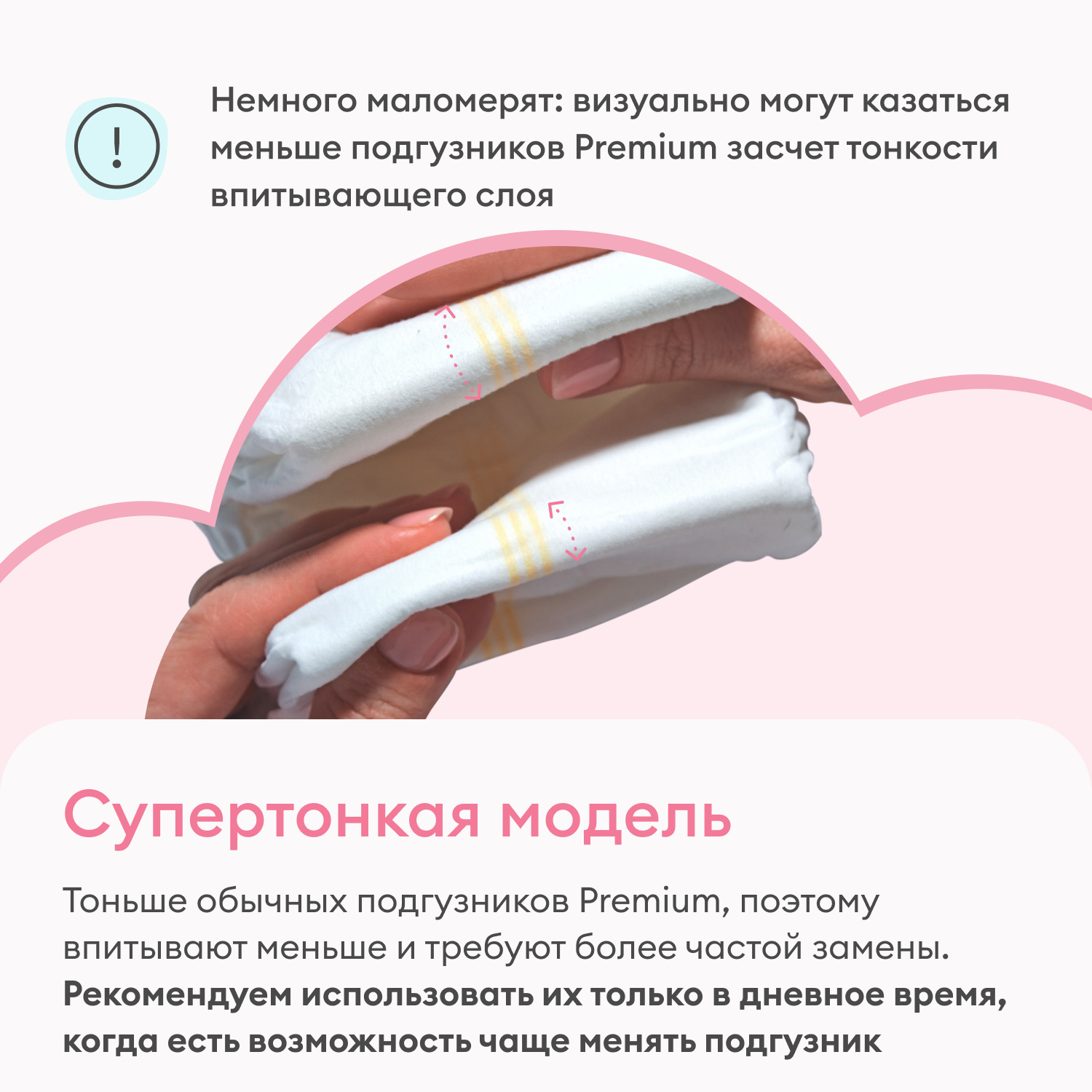 Подгузники Premium для чувствительной кожи: Полимерный суперабсорбент (Sumitomo, Япония), распушенная целлюлоза, нетканые материалы, эластичная тесьма, полиэтилен, клей.