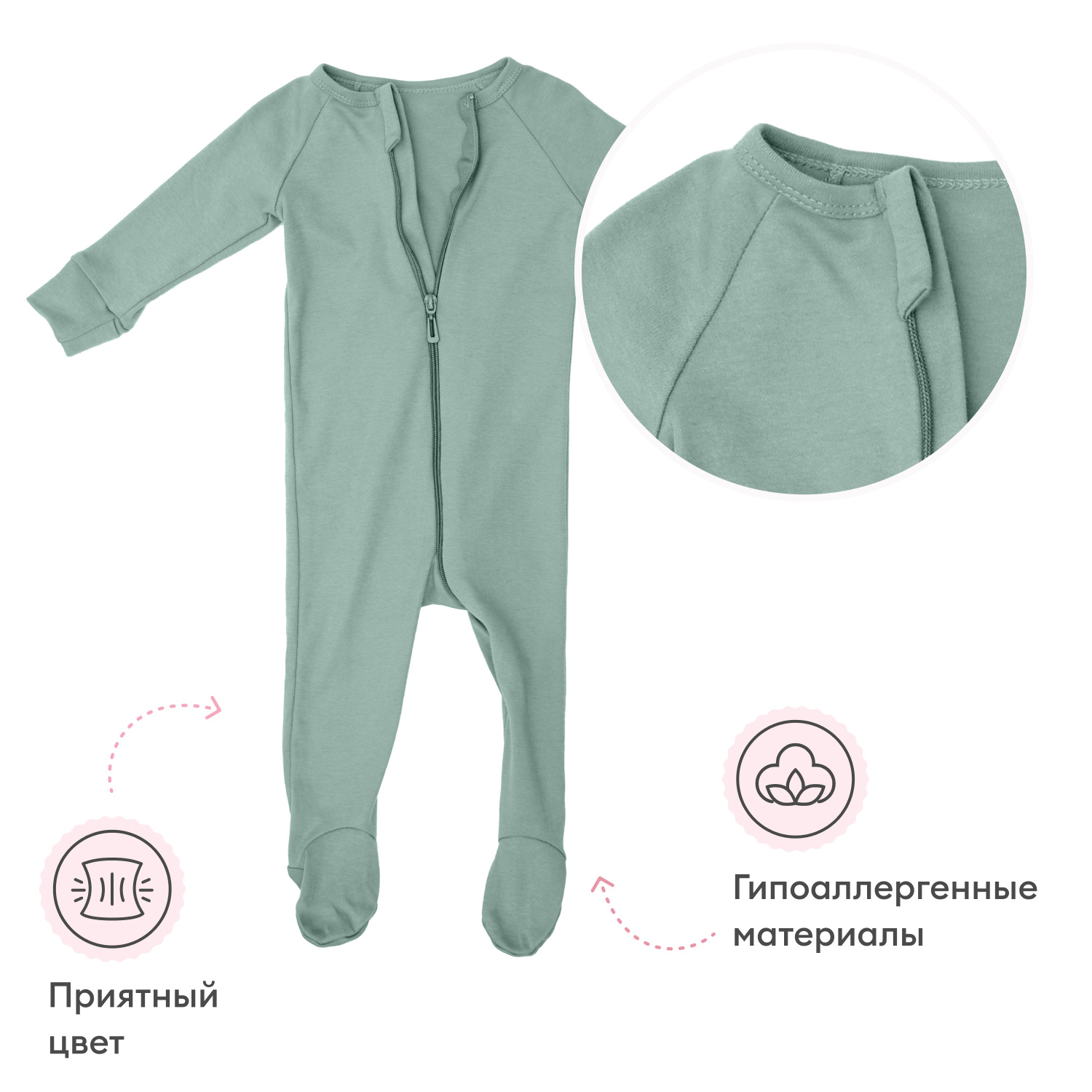 Комбинезон с лапками и длинным рукавом на молнии (Оливковый)