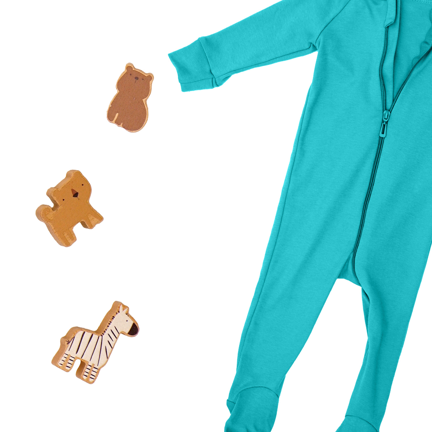Комбинезон с лапками и длинным рукавом на молнии (Бирюзовый)