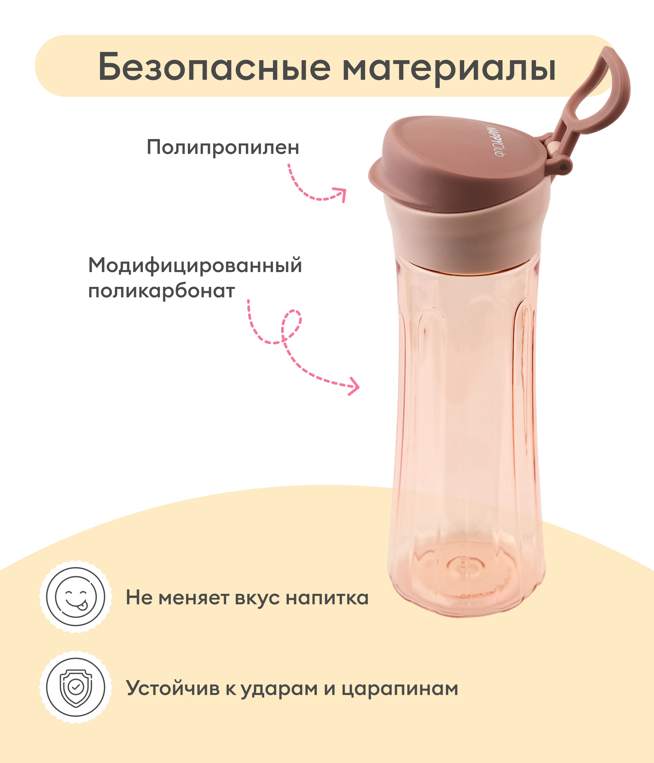 Безопасные и качественные материалы. Корпус из модифицированного поликарбоната — прочный и долговечный. Крышка из полипропилена и уплотнительное кольцо из силикона обеспечивают герметичность и безопасность.