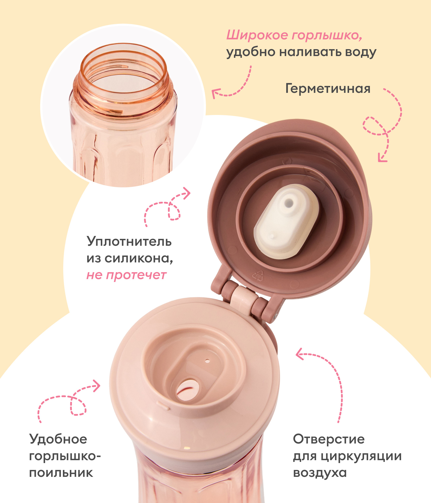 Многофункциональность и практичность. Удобна как дома, так и в поликлинике, на тренировках и прогулках с ребенком. Компактный размер легко помещается в спортивную сумку, карман коляски или женскую сумочку. Герметичная крышка предотвращает протекание, что удобно при переноске в сумке или коляске. Легко очищается, подходит для частого использования.