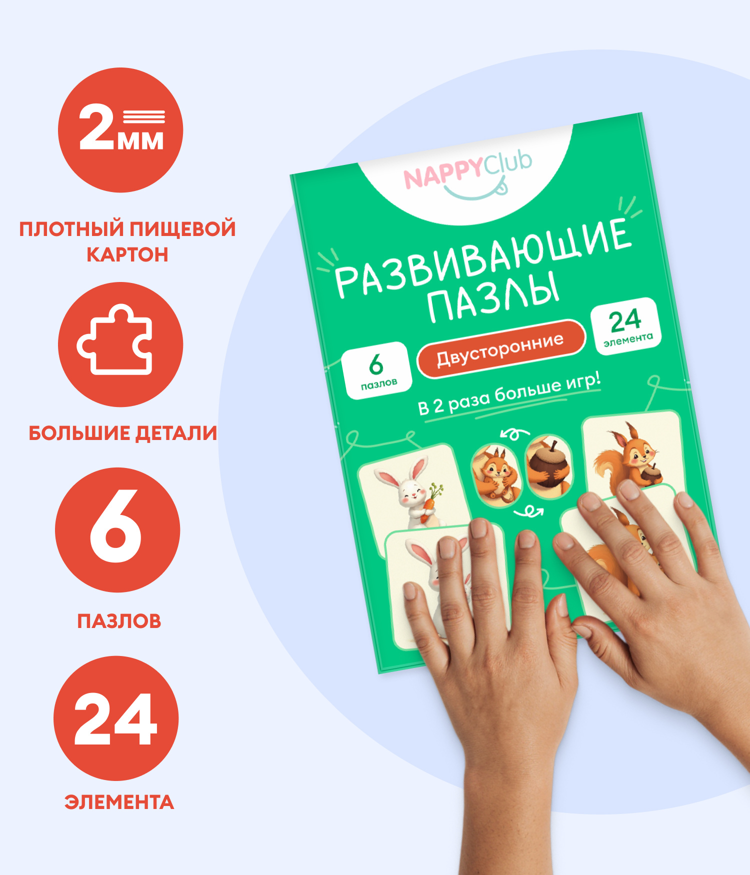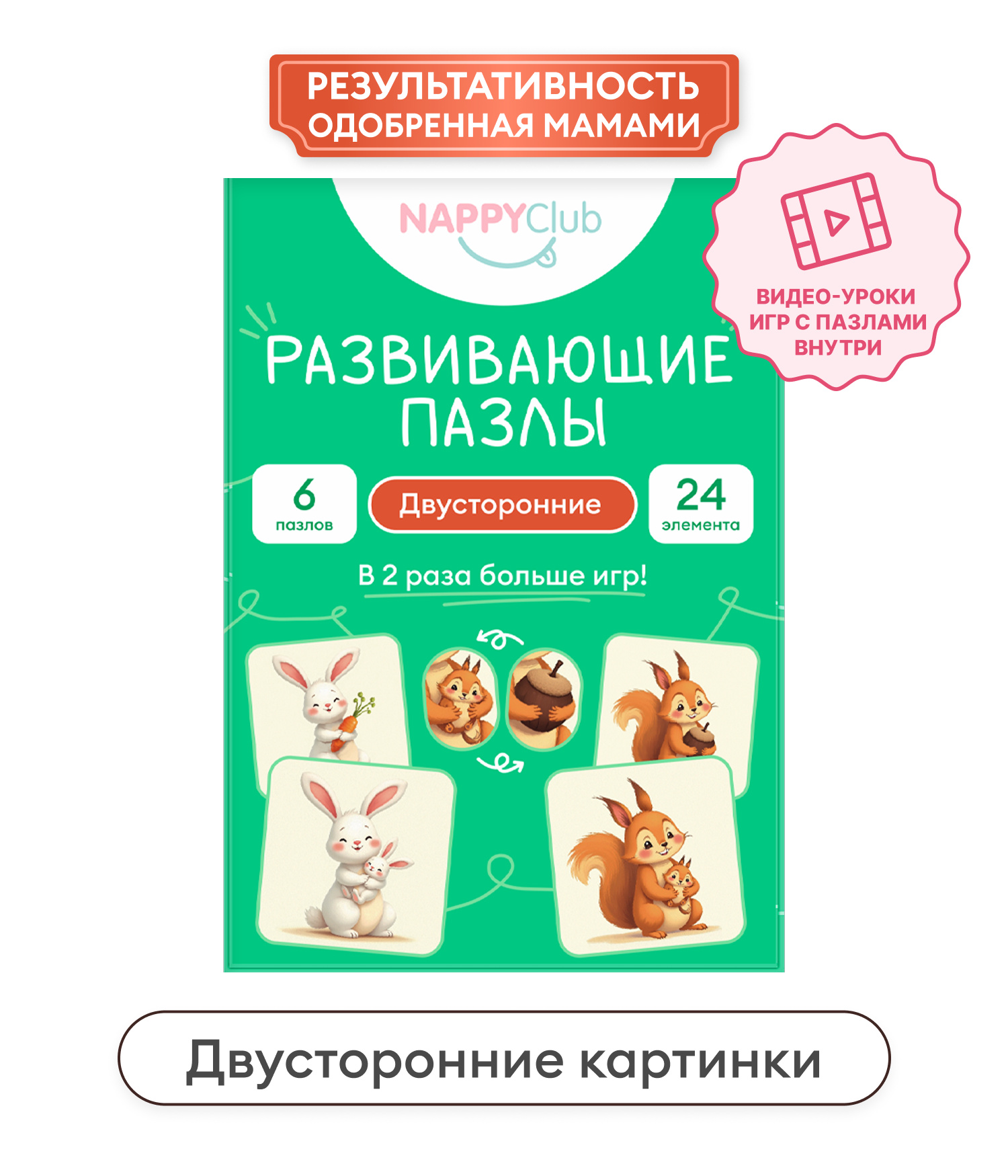Двусторонний пазл «Животные и их дети» для самых маленьких от NappyClub!
