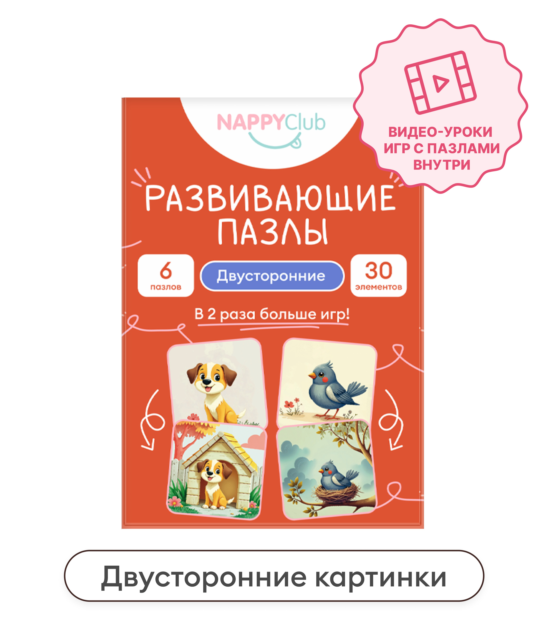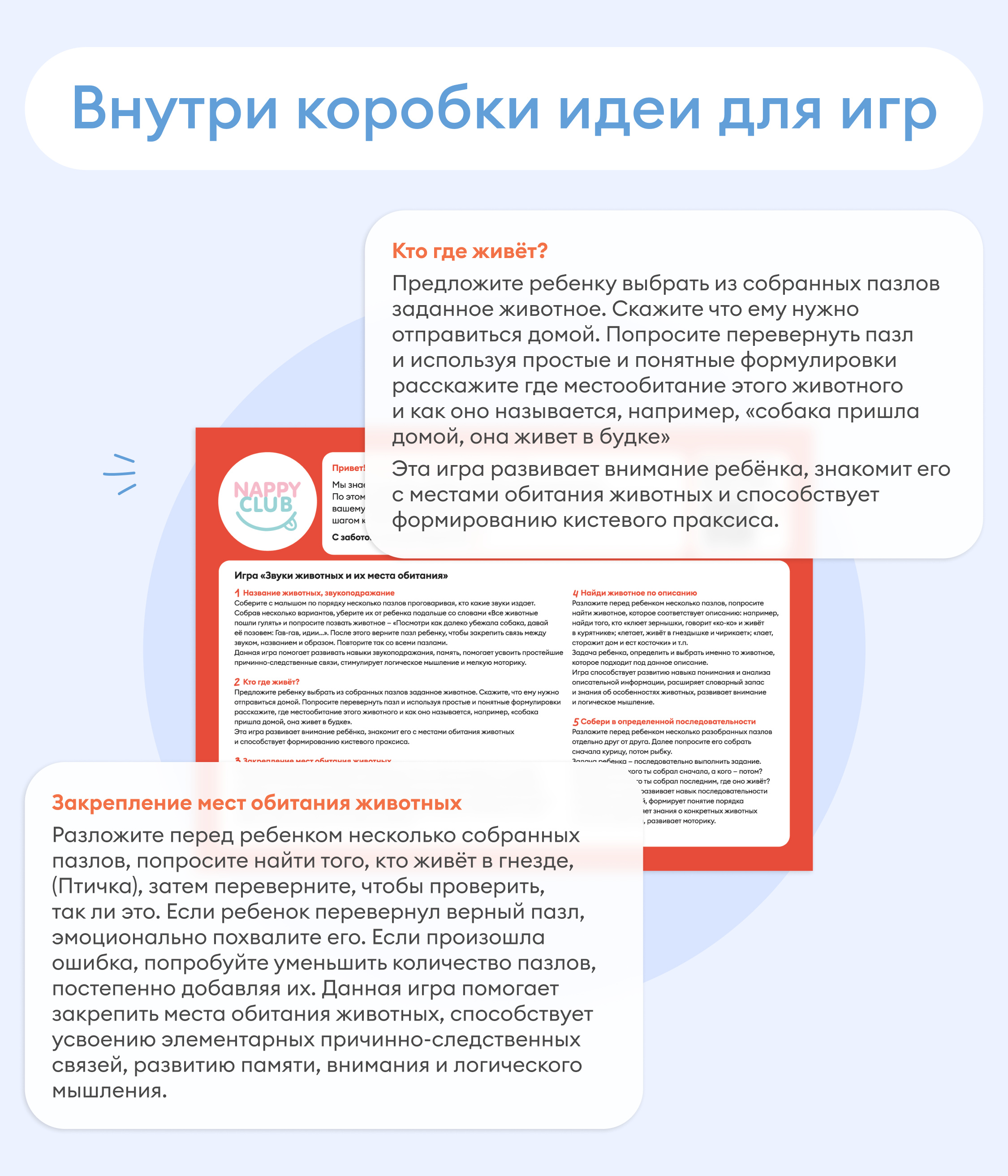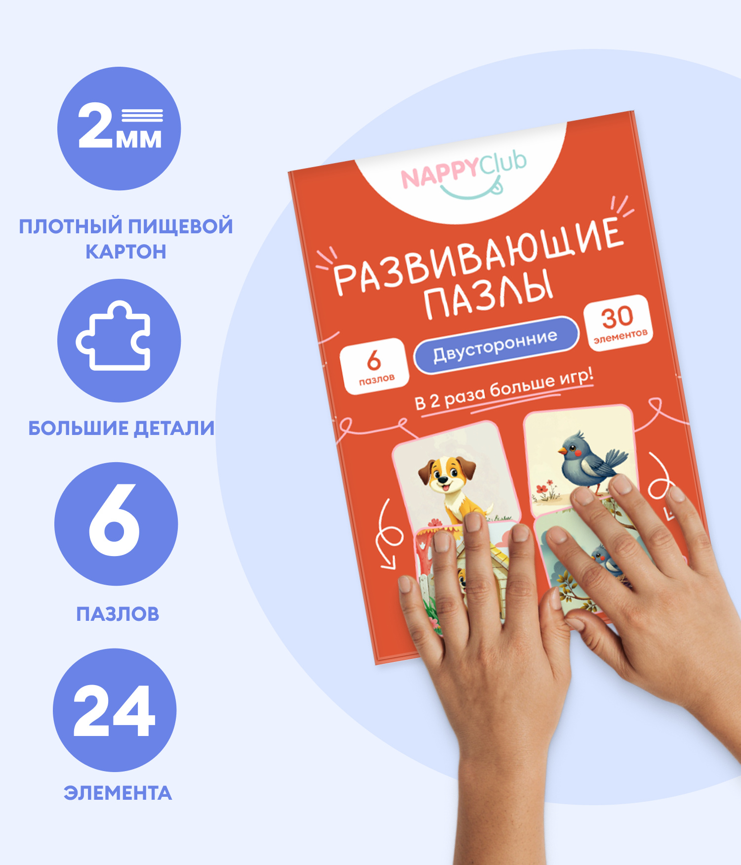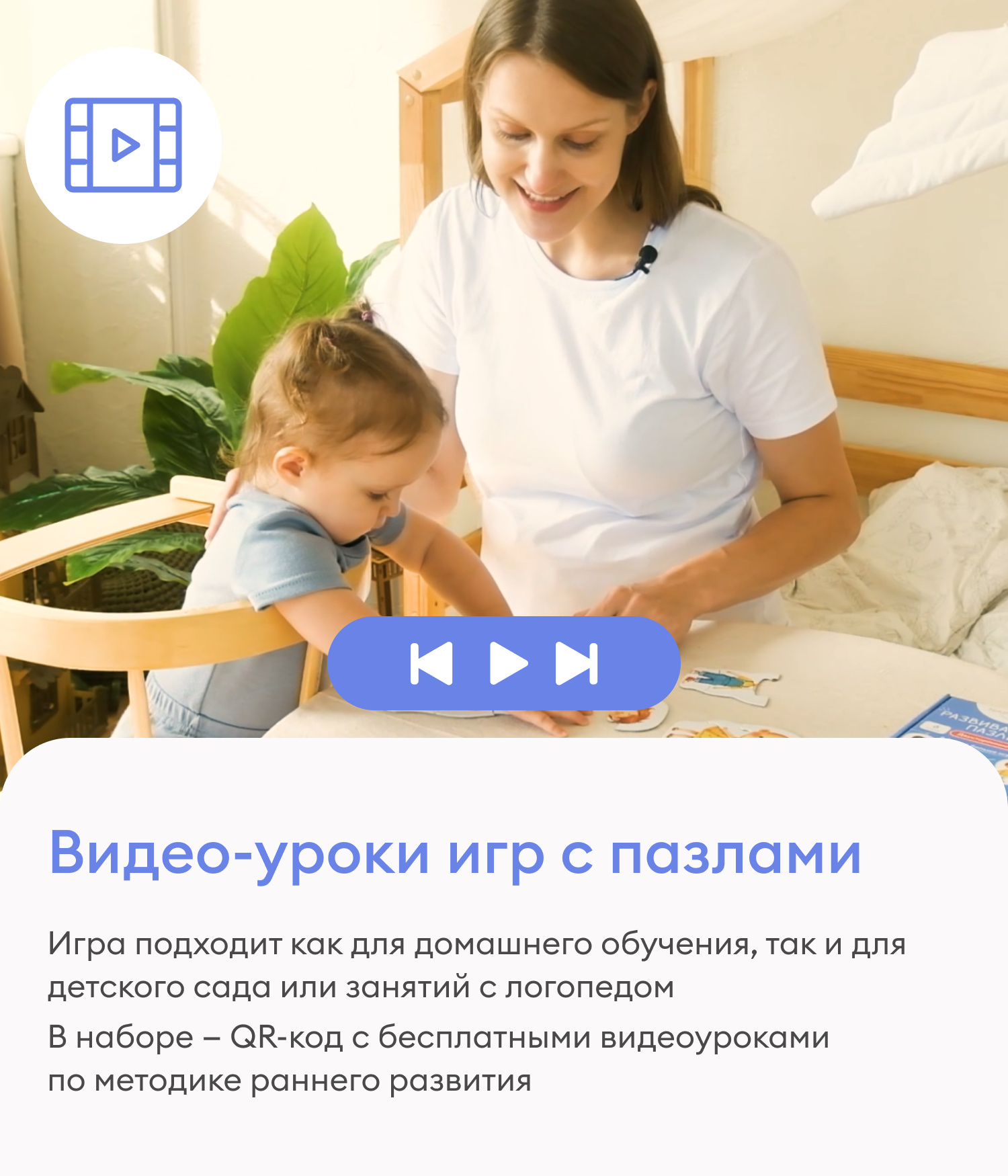 В комплекте: 6 пазлов, коробка, идеи для игр "ребенок + родитель"