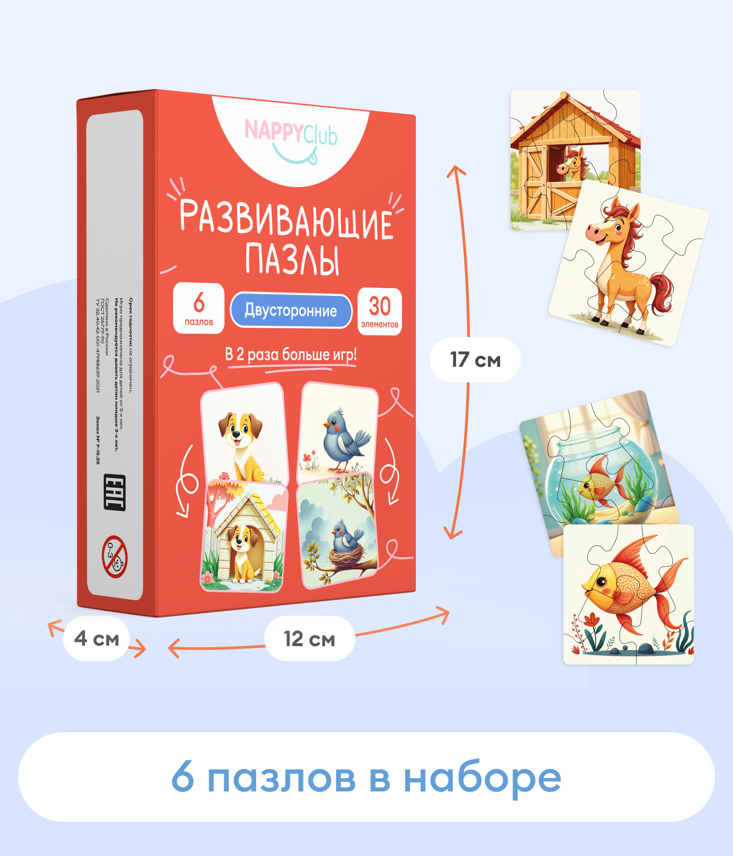 Двусторонний пазл «Животные и их дома» для самых маленьких от NappyClub!