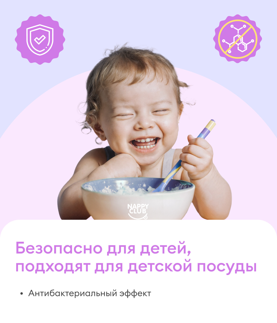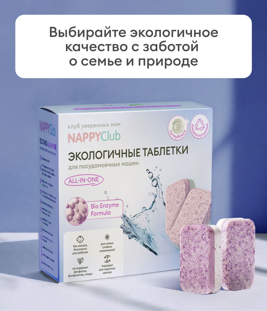 Они эффективно работают даже в жесткой воде, обеспечивая безупречный результат каждый раз. Выбирайте NappyClub – чистая посуда, чистая совесть!