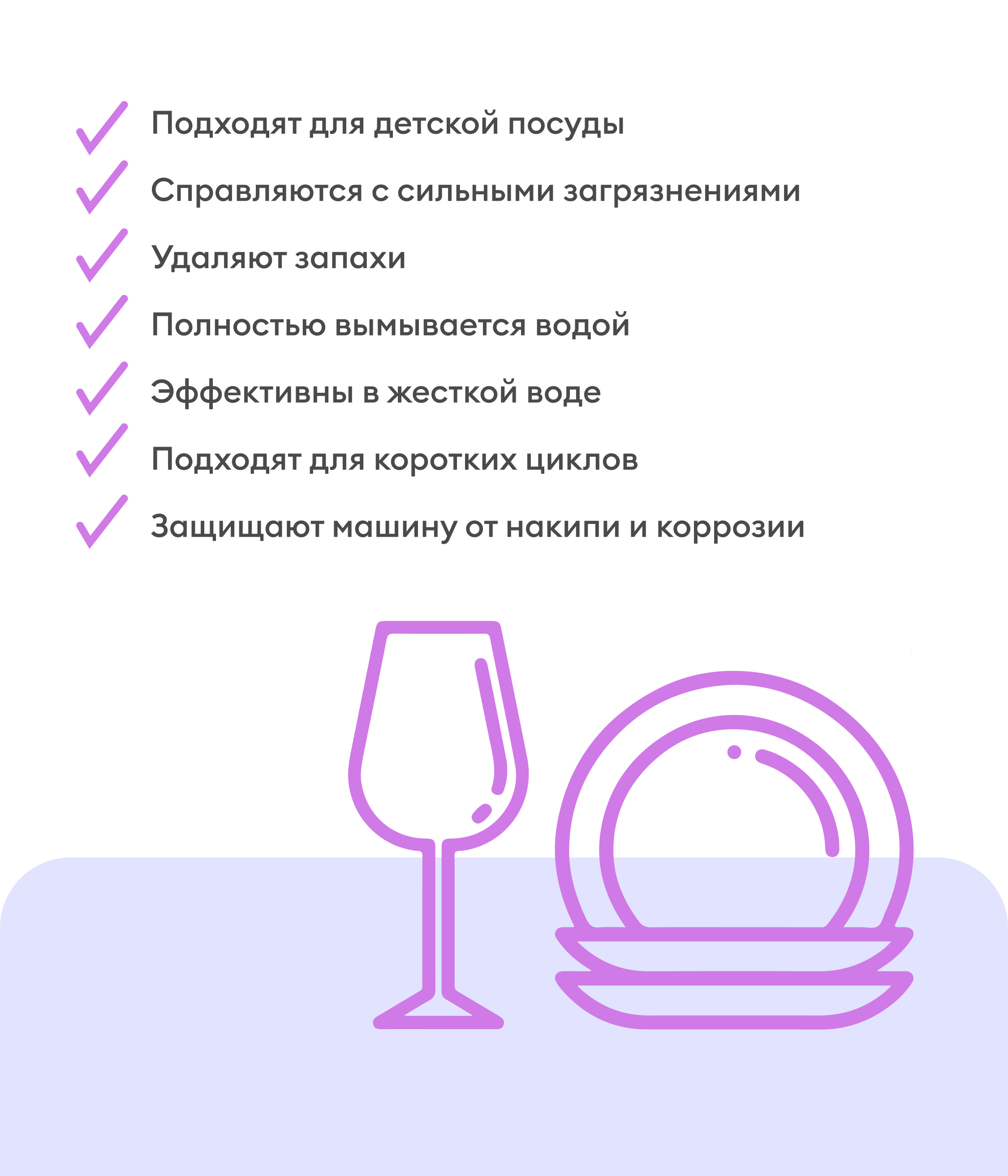 Защищают посудомоечную машину от накипи и коррозии, продлевая ее срок службы