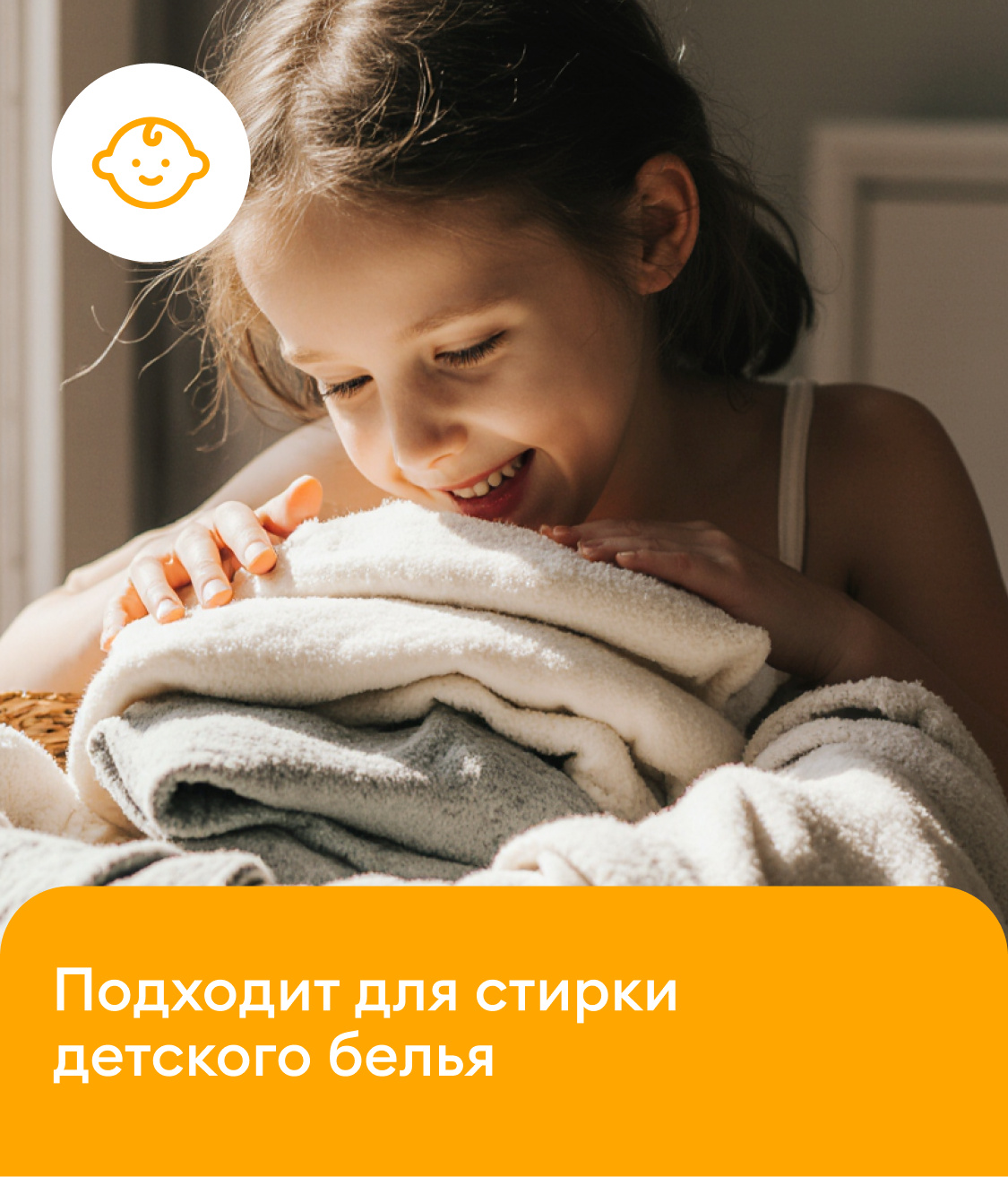 Гель эффективно удаляет различные загрязнения, от пятен от еды до следов от игр на свежем воздухе. Он прекрасно работает как в горячей, так и в холодной воде, что позволяет экономить электроэнергию и бережно относиться к окружающей среде.