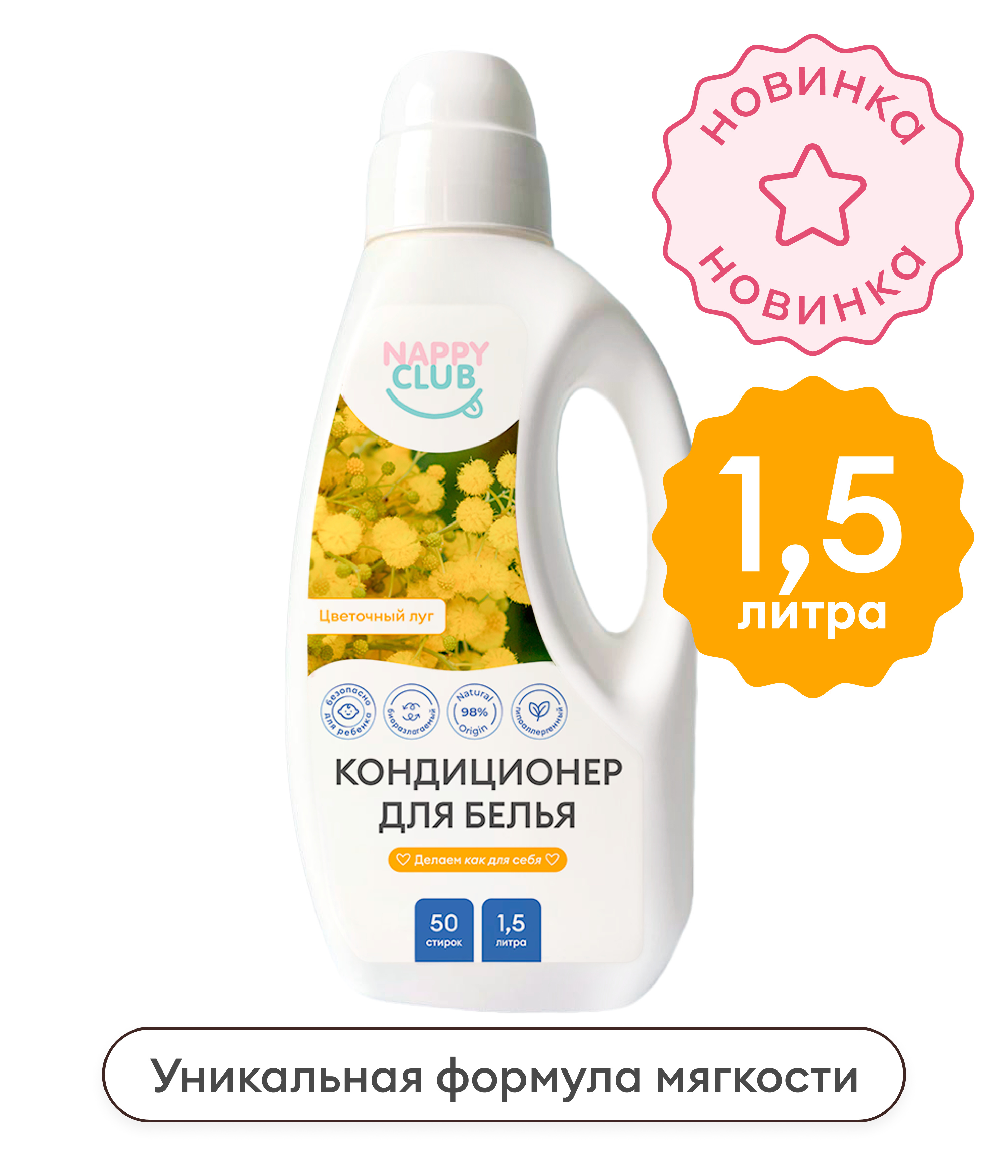 Nappy Club Кондиционер для детского белья "Цветочный луг" 1,5 л – нежность и свежесть для самых маленьких!
