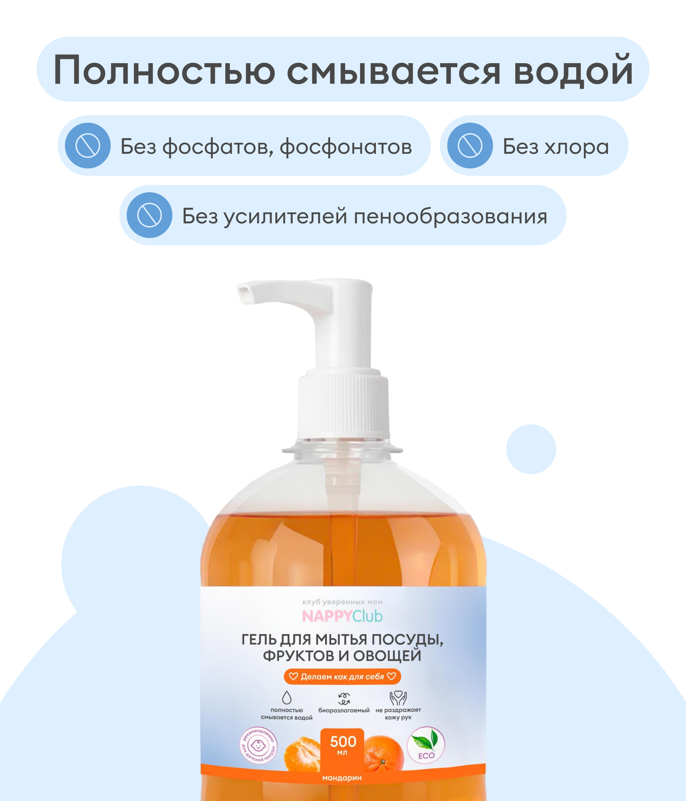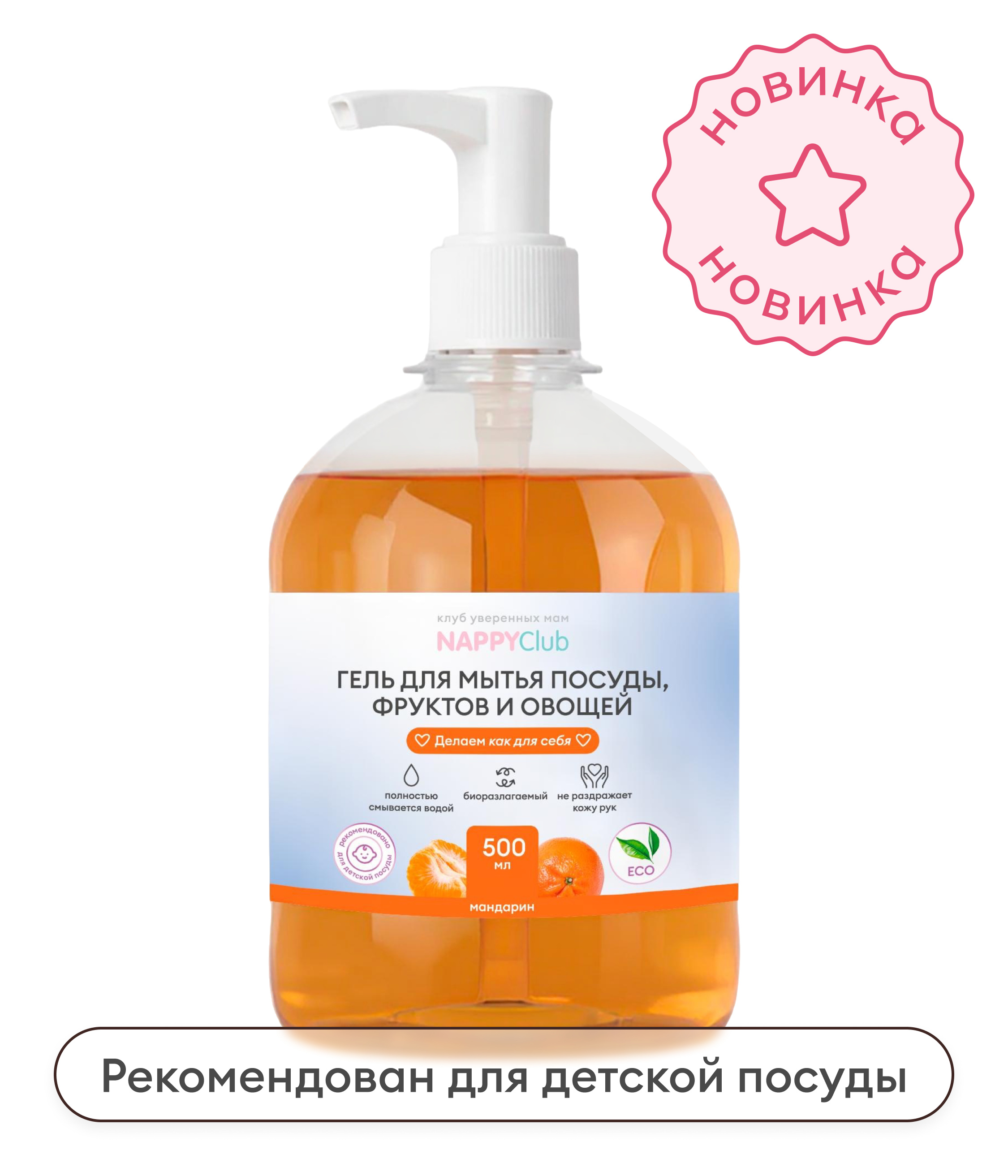 Nappy Club Гель для мытья посуды, фруктов и овощей "Мандарин" – сияющая чистота и бодрящий аромат!