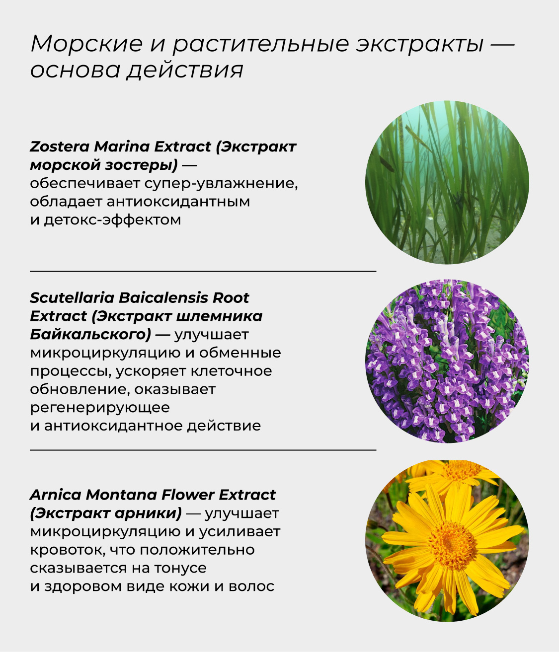 Мультиактивный комплекс и революционные активы: Baicapil (Байкопил) и экстракт зостеры морской.