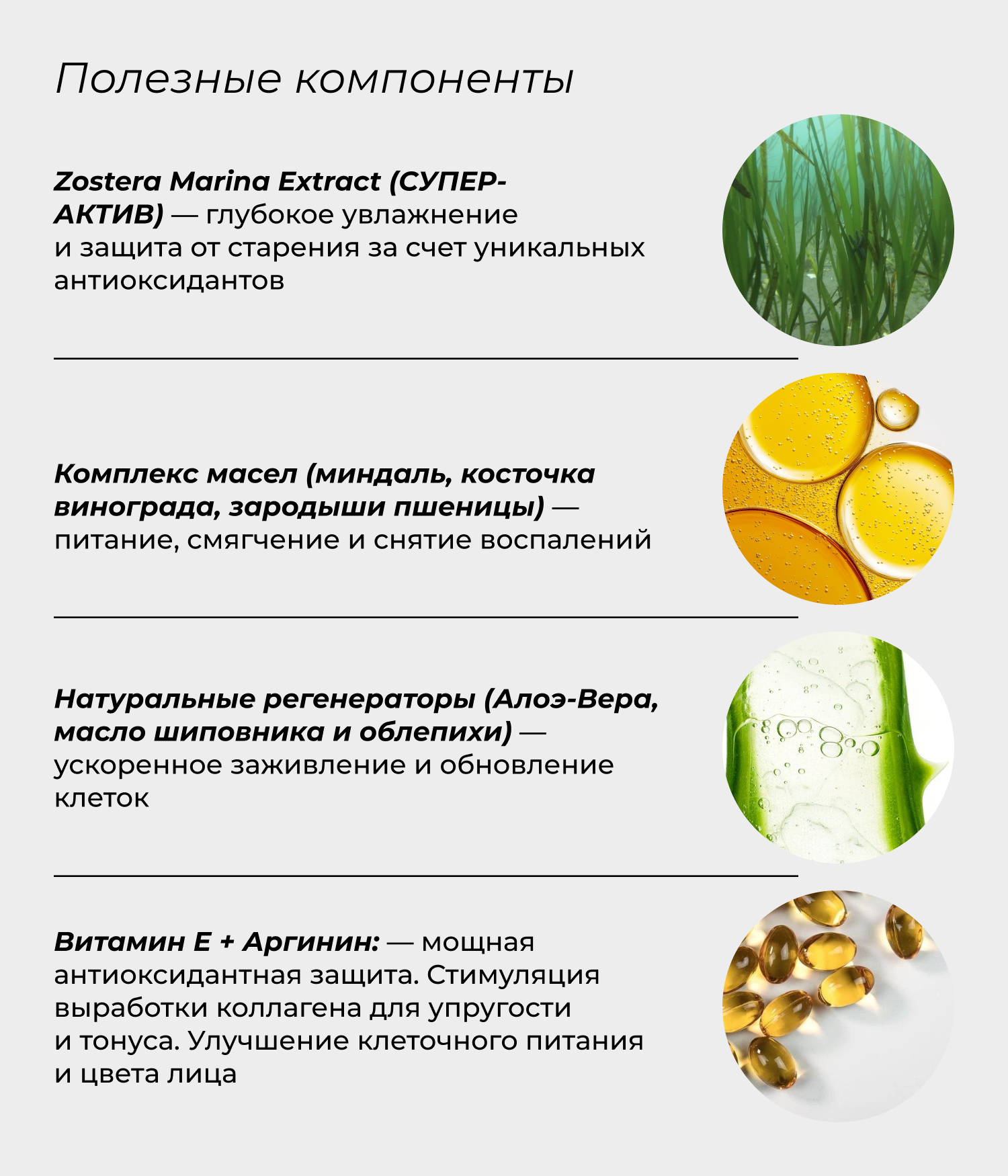 Глубокое увлажнение: экстракт Zostera Marina насыщает кожу живительной влагой и минералами.