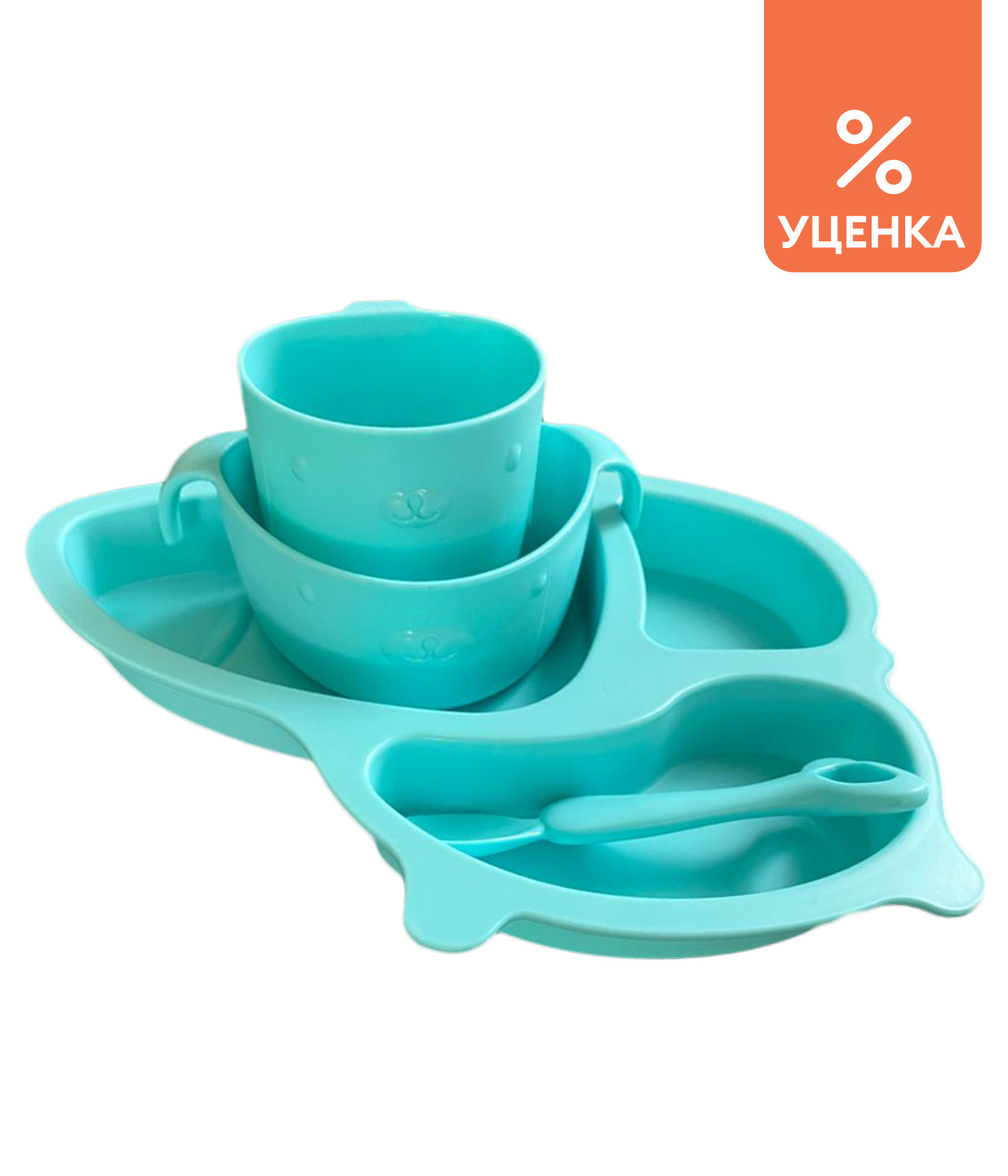 4 предмета в наборе: глубокая тарелка, тарелка с 3-мя секциями, чашка, ложка.