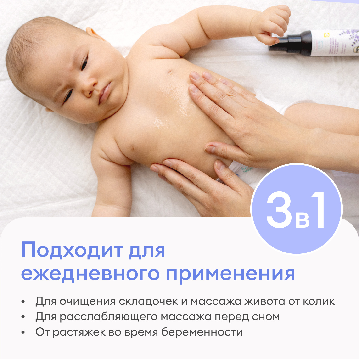 Идеально для общего массажа младенцев и массажа животика в первые месяцы жизни