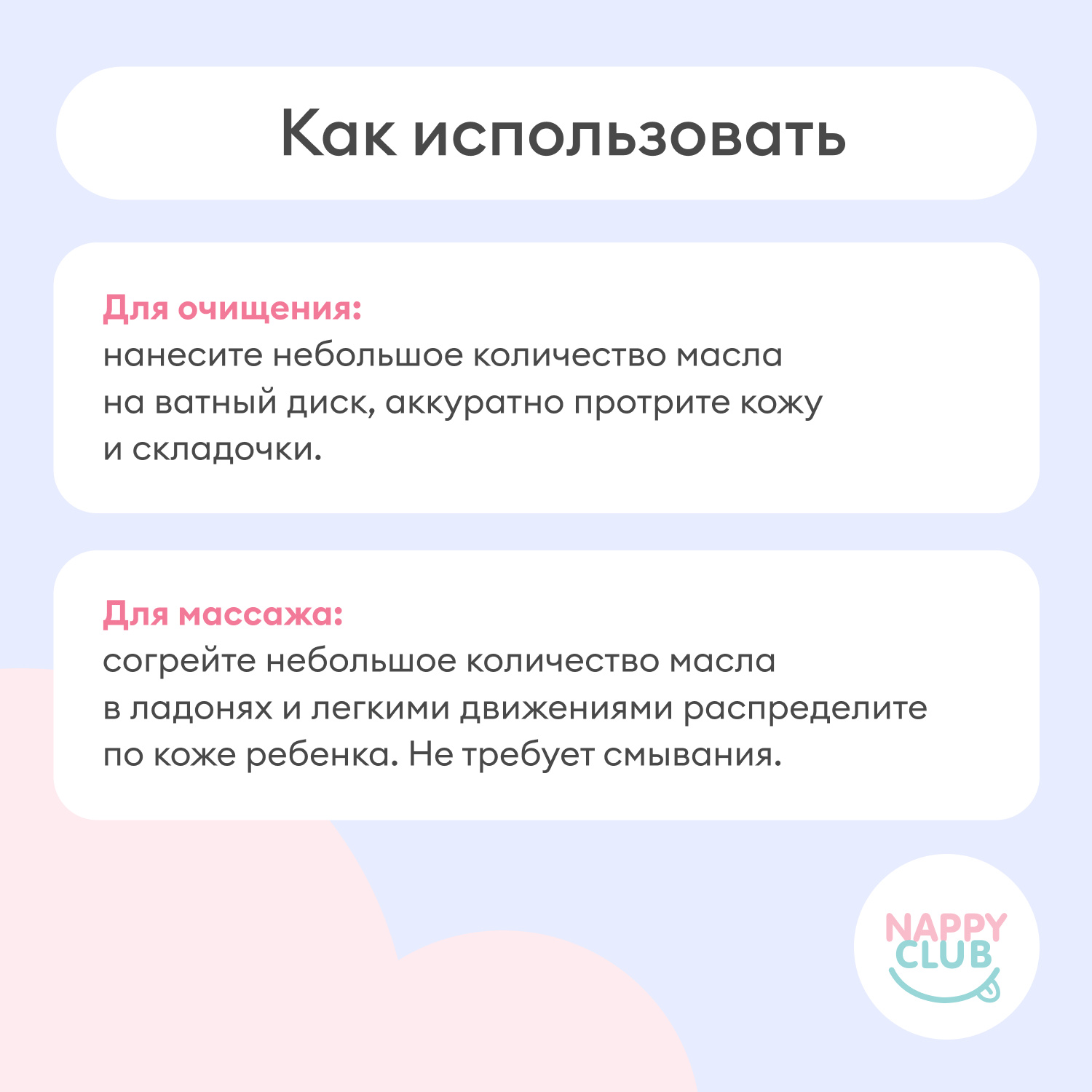 Наше детское масло идеально подходит для массажа и очищения кожных складочек, смягчает кожу и оберегает от внешних воздействий.