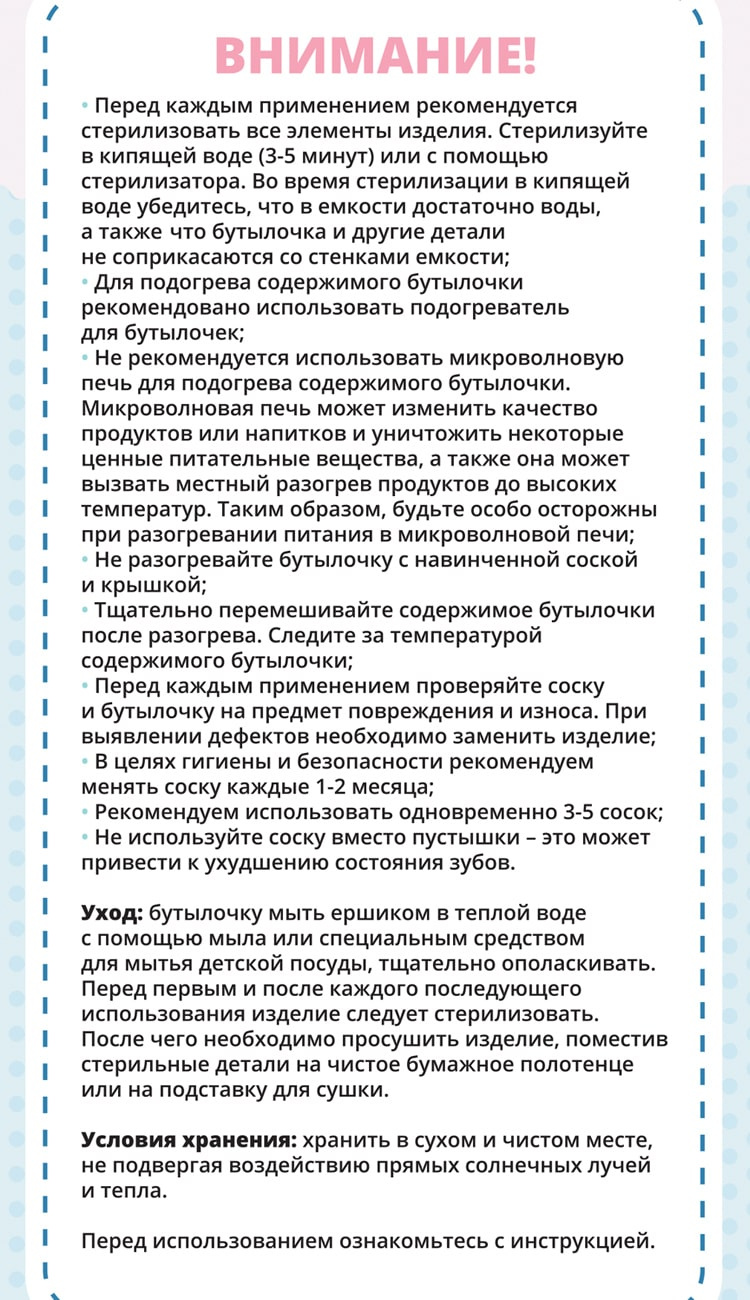 Внимание: на бутылочке размера L есть погрешность по шкале от отметки 110 мл, фактический объем 250 мл!