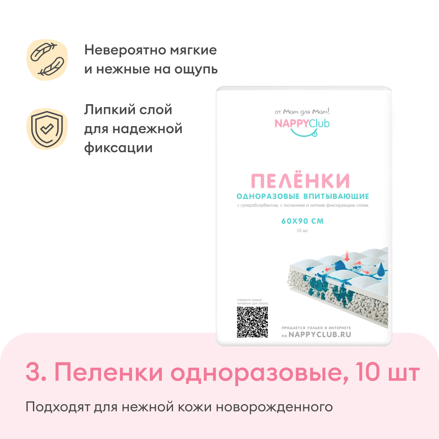 3. Одноразовые пеленки 60*90 см, 10 шт