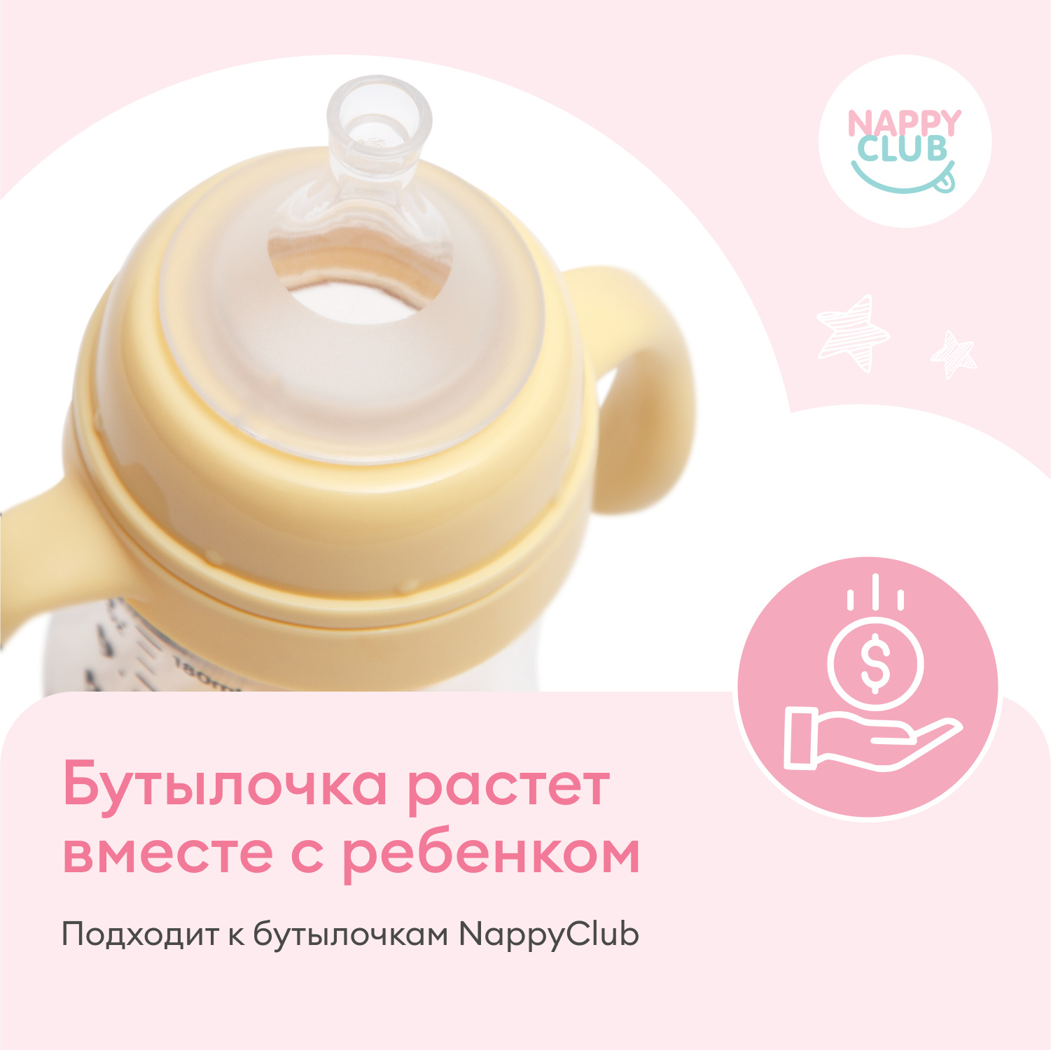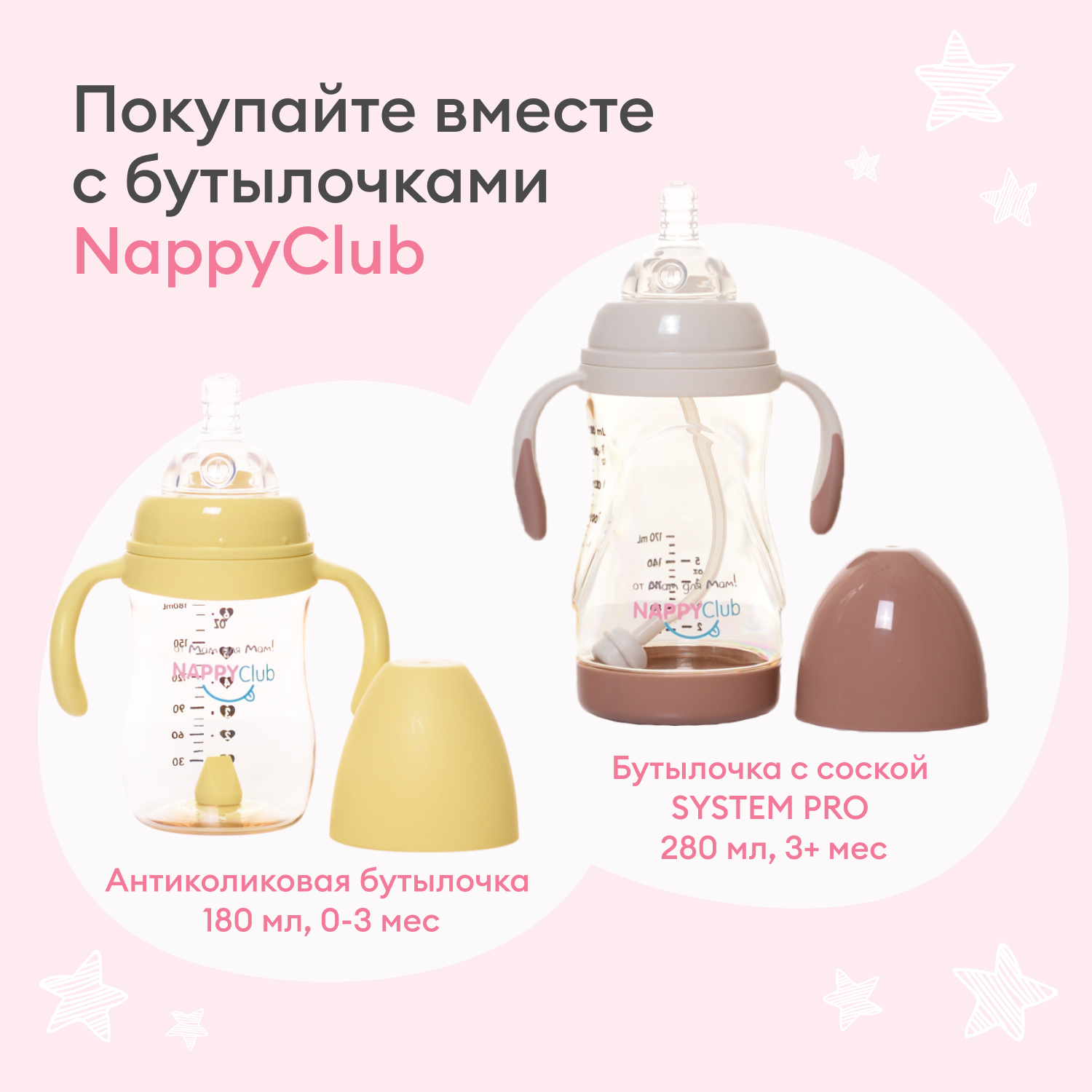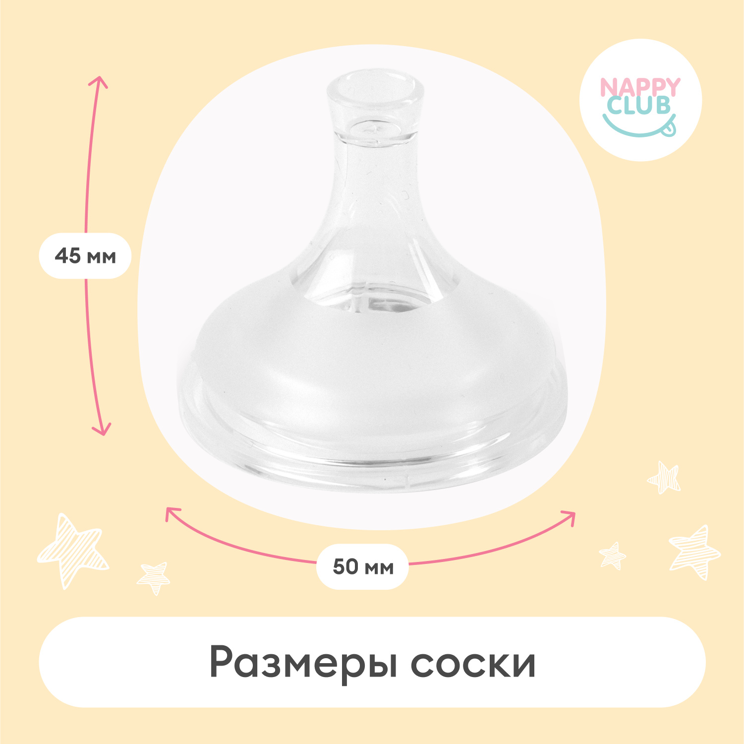 Соска подойдёт для всех бутылочек NappyClub, кроме силиконовой бутылочки.