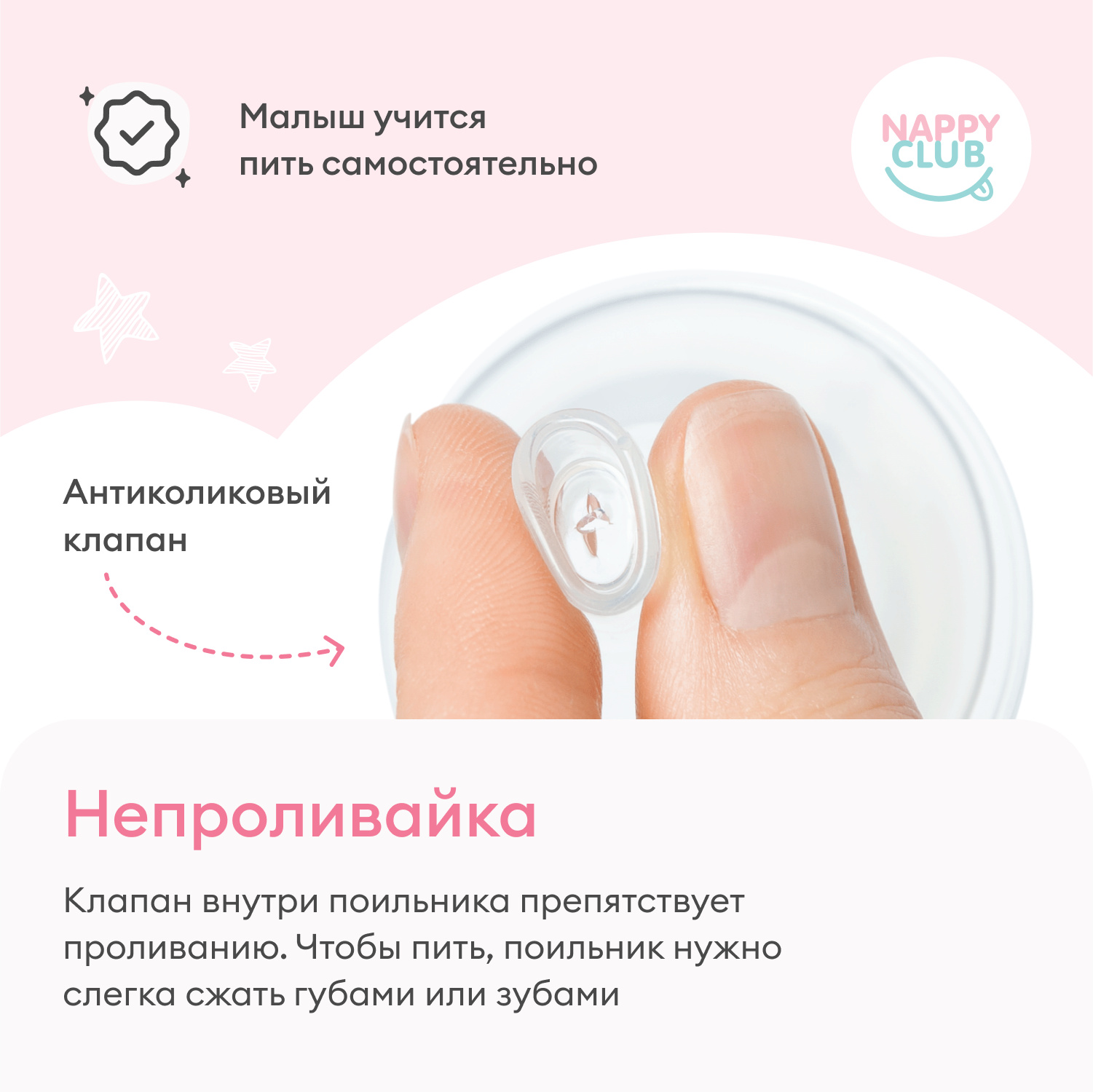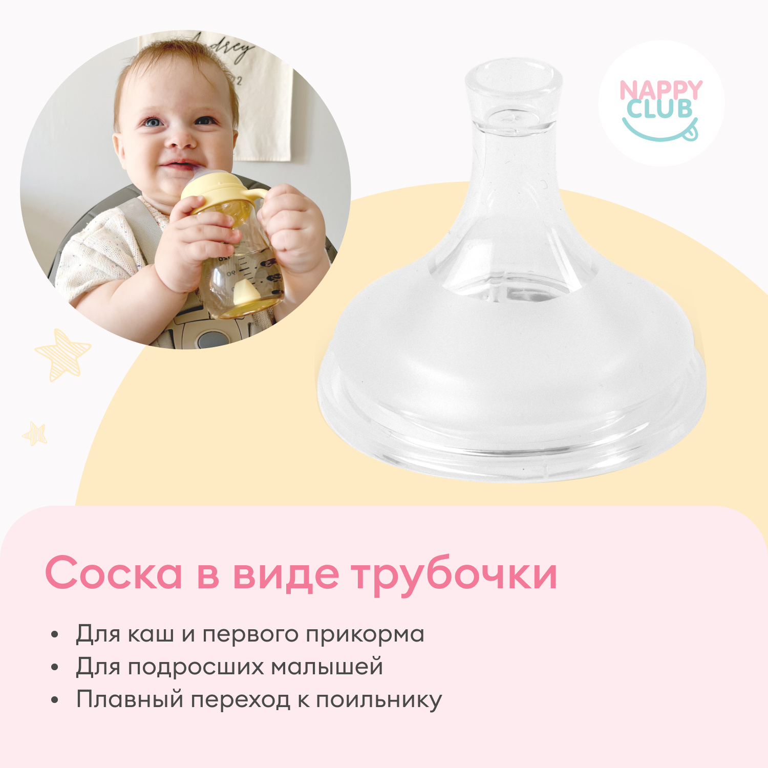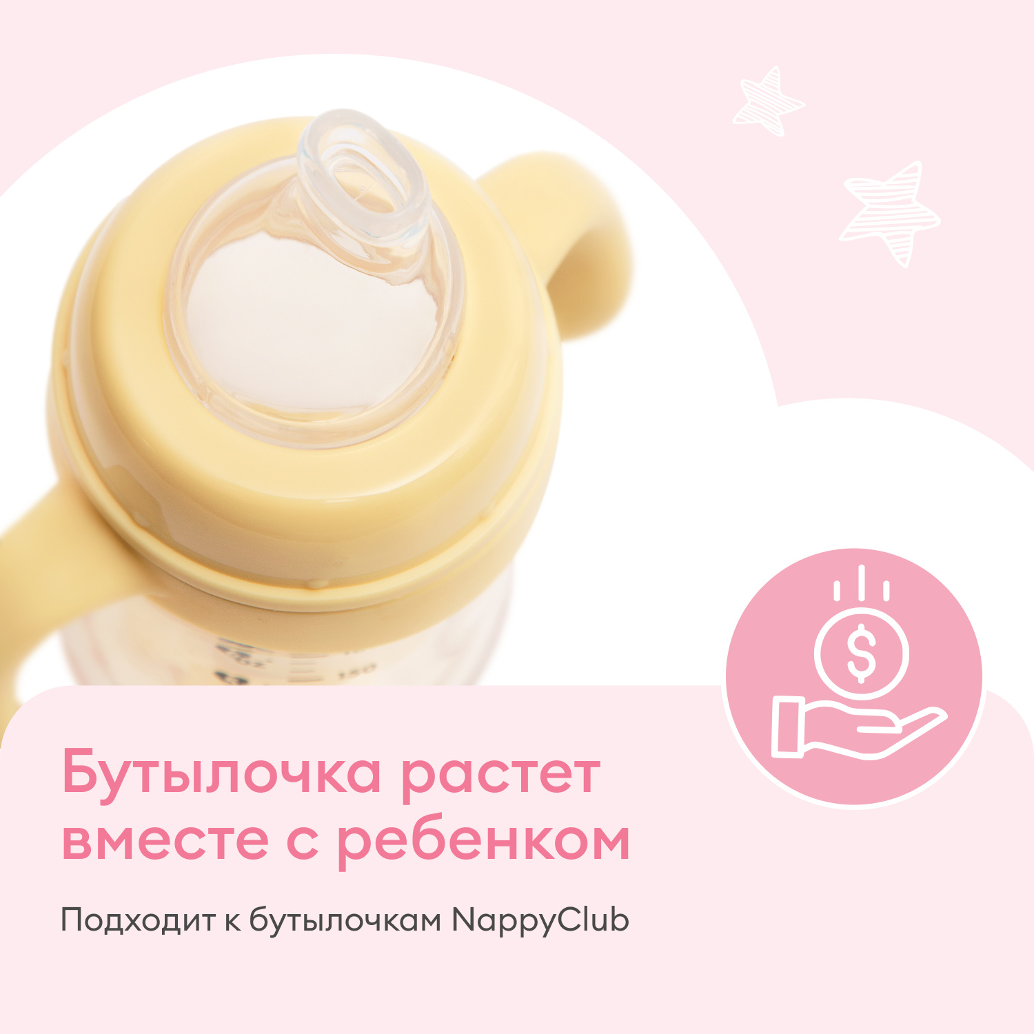 Соска подойдёт для всех бутылочек NappyClub, кроме силиконовой бутылочки.