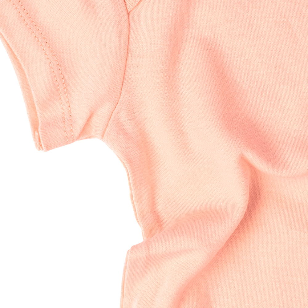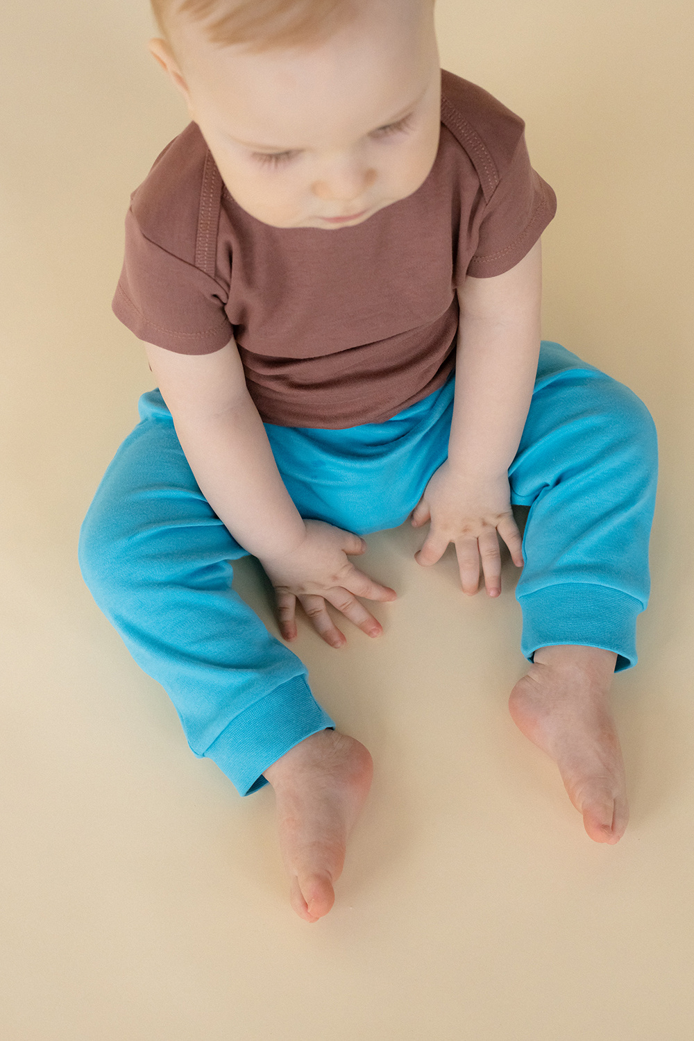Футболка с короткими рукавами – самая универсальная вещь в гардеробе каждого малыша. Её легко сочетать с любыми штанишками или ползунками, а благодаря однотонным расцветкам к ней очень просто подбирать любые даже принтованные вещи.