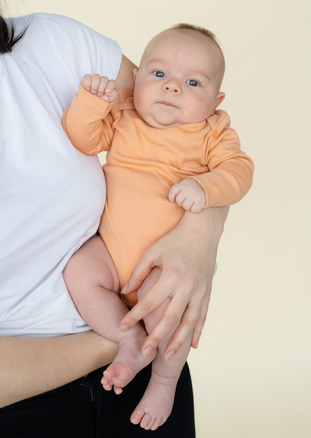 Представляем вам незаменимую вещь гардероба вашего крохи – боди с длинным рукавом и с кнопками под подгузник.