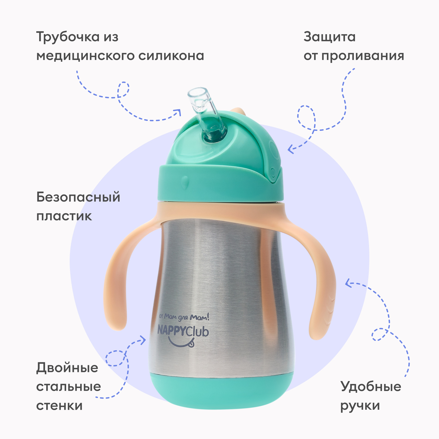 Термобутылка с трубочкой NappyClub – идеальное решение для прогулок и путешествий.
