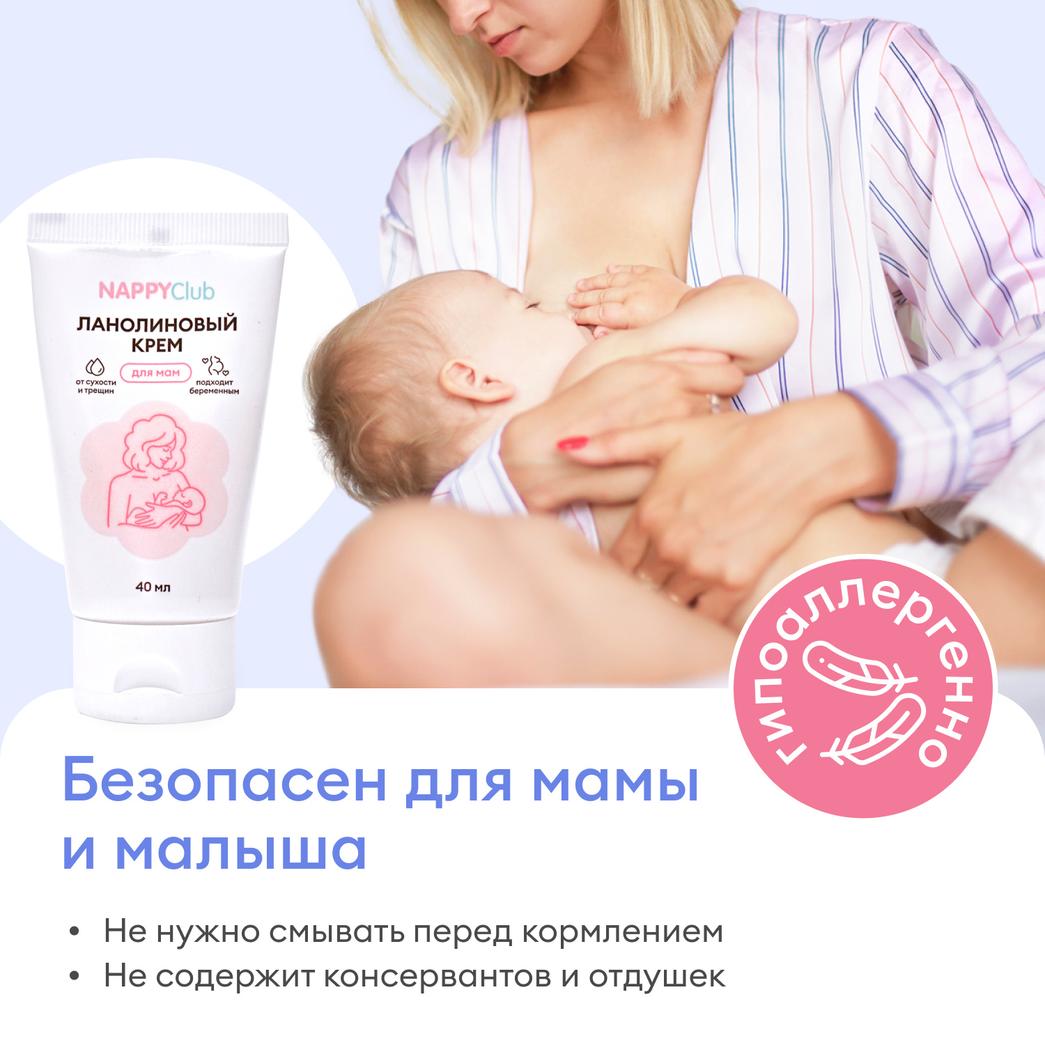 Не требует смывания при кормлении, безопасен для ребенка