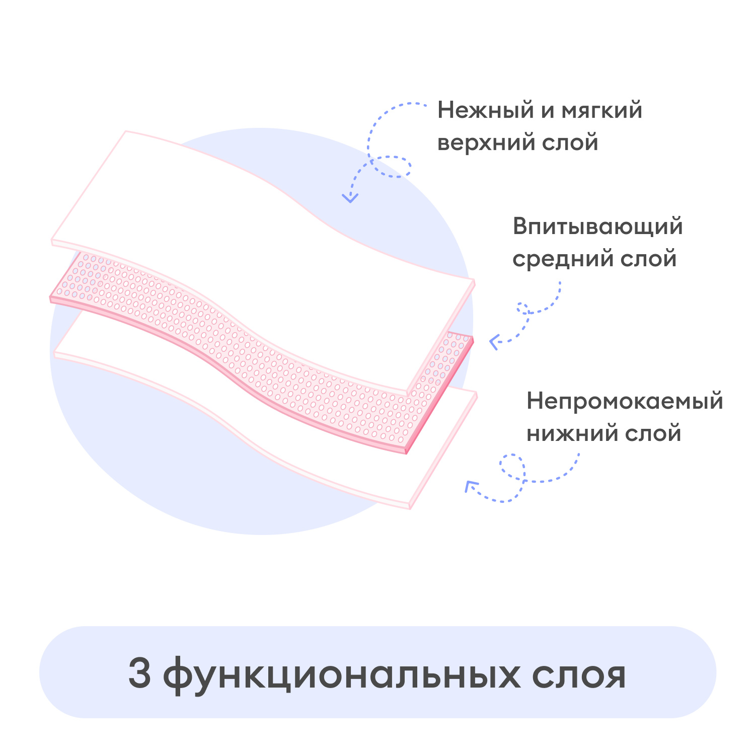 3-хслойная структура: нежный и мягкий верхний слой, впитывающий средний слой и непромокаемый нижний
