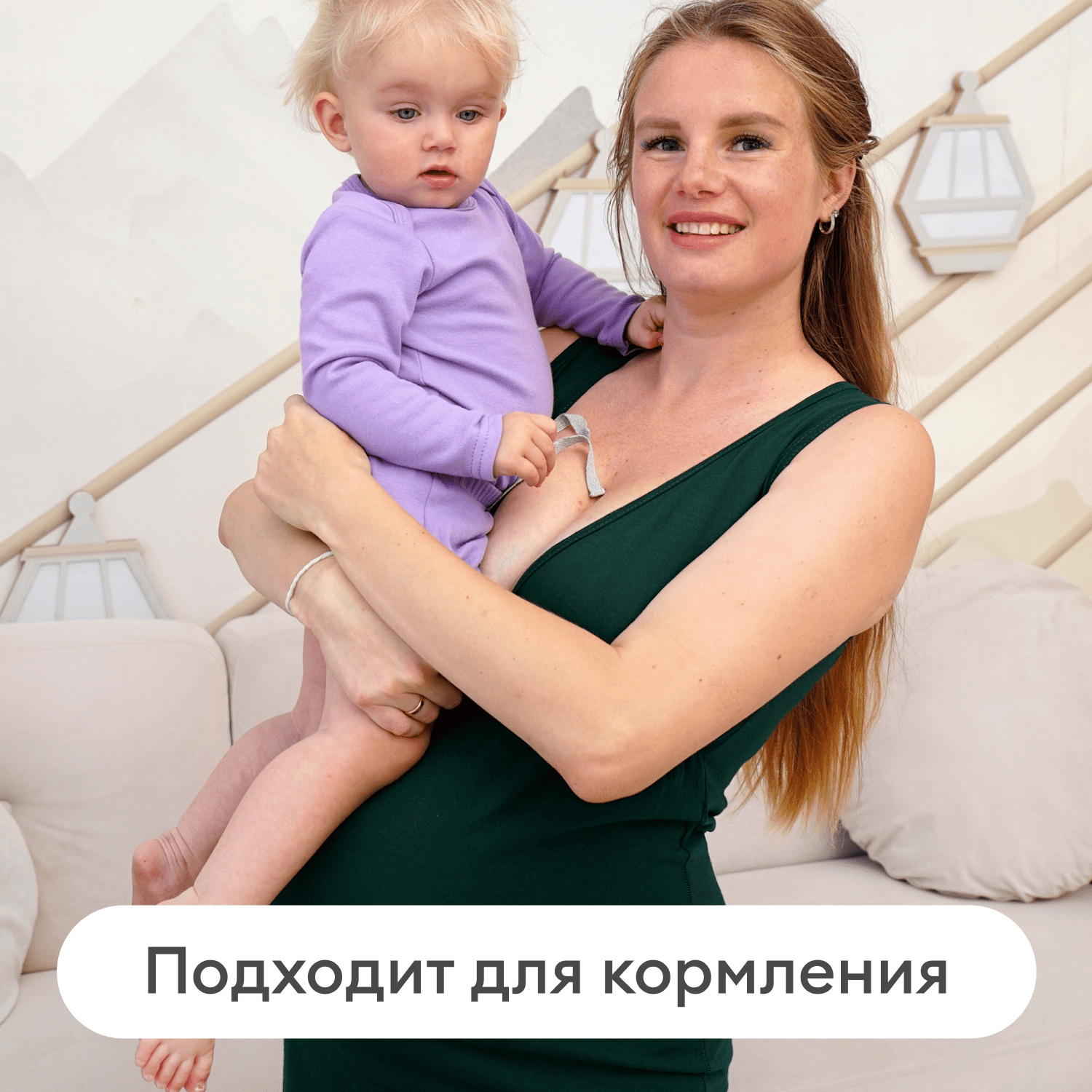 Ночная рубашка без рукава прекрасно дополняет комплект, обеспечивая удобство во время кормления малыша.