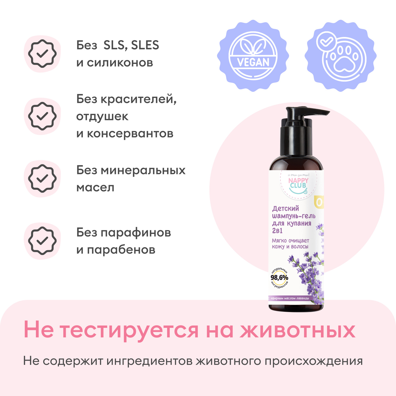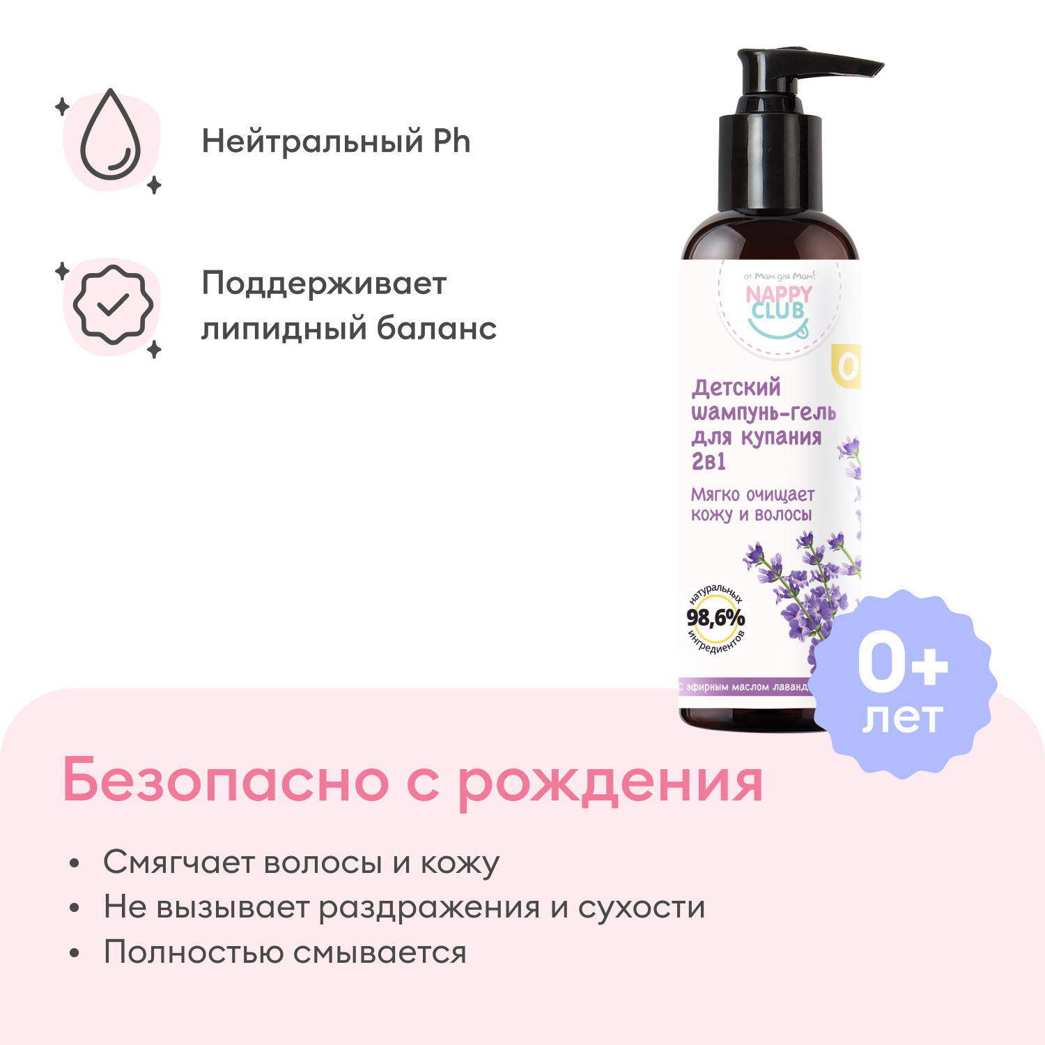 Смягчает кожу и волосики без раздражения