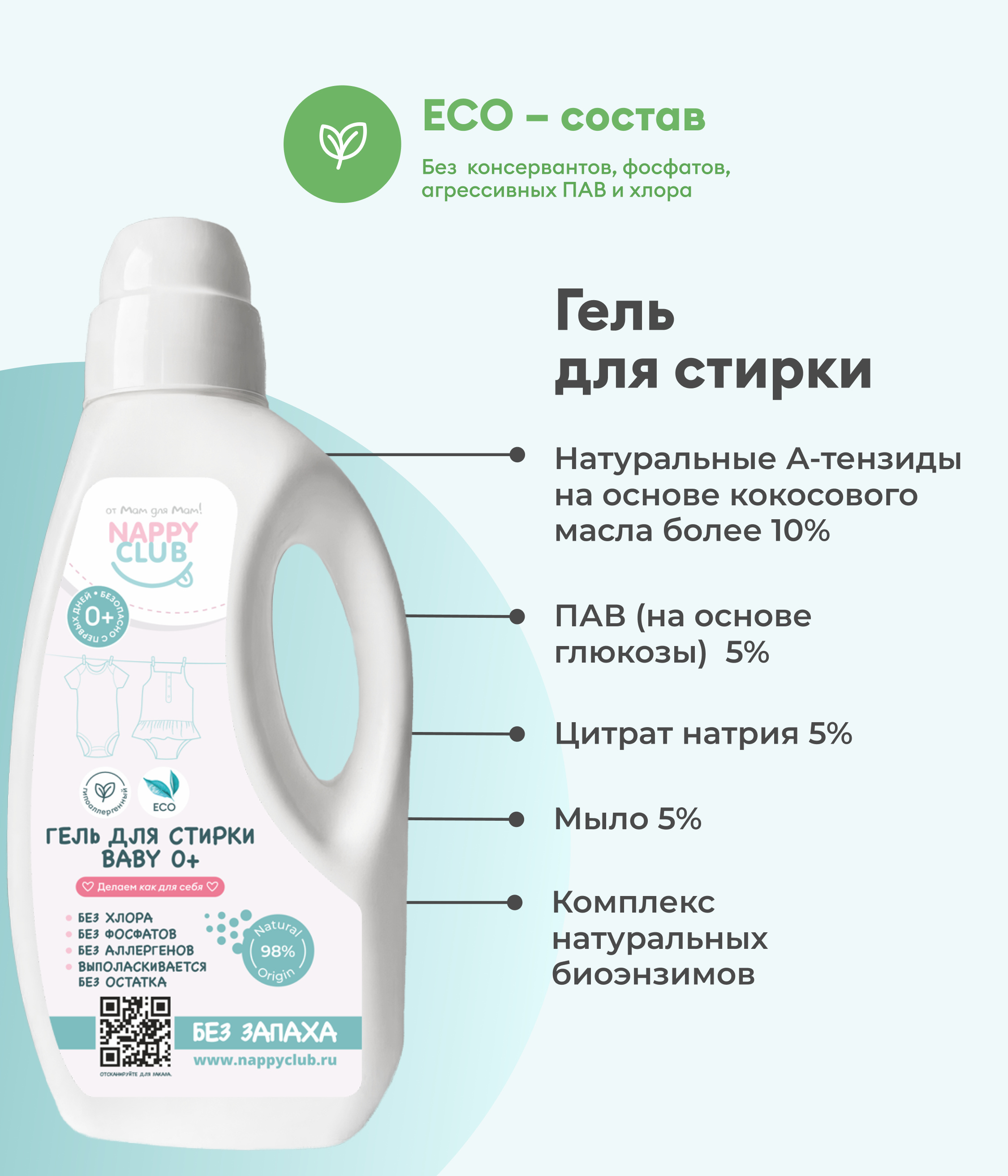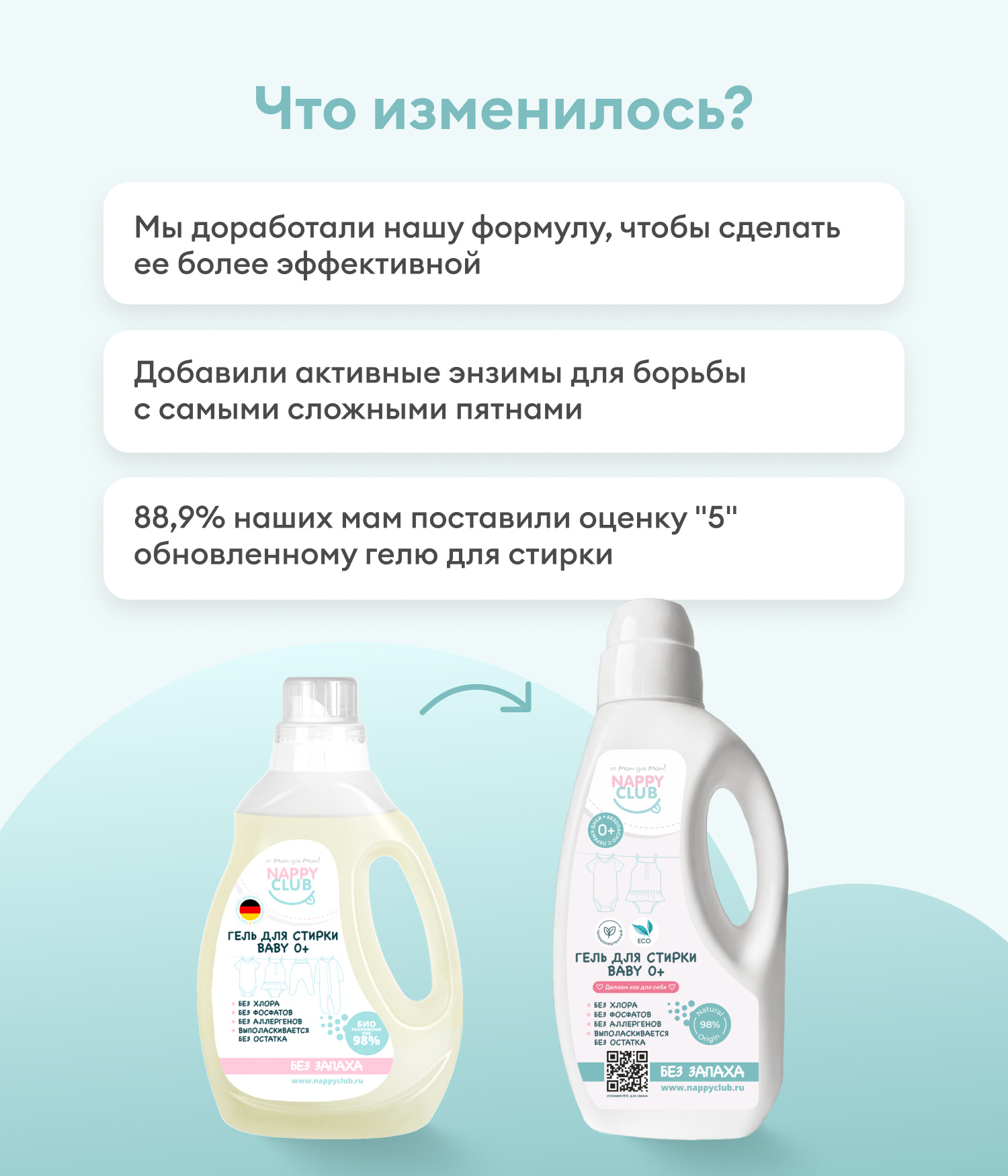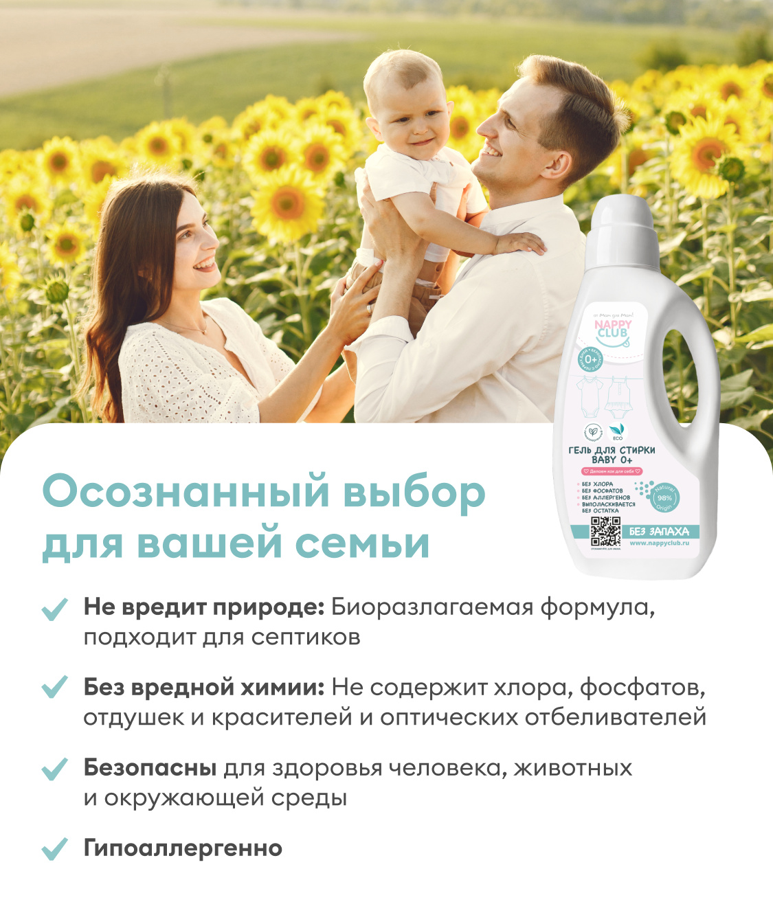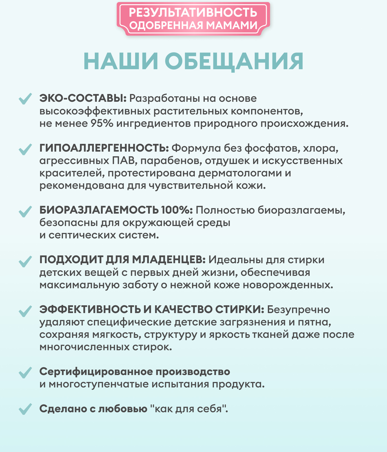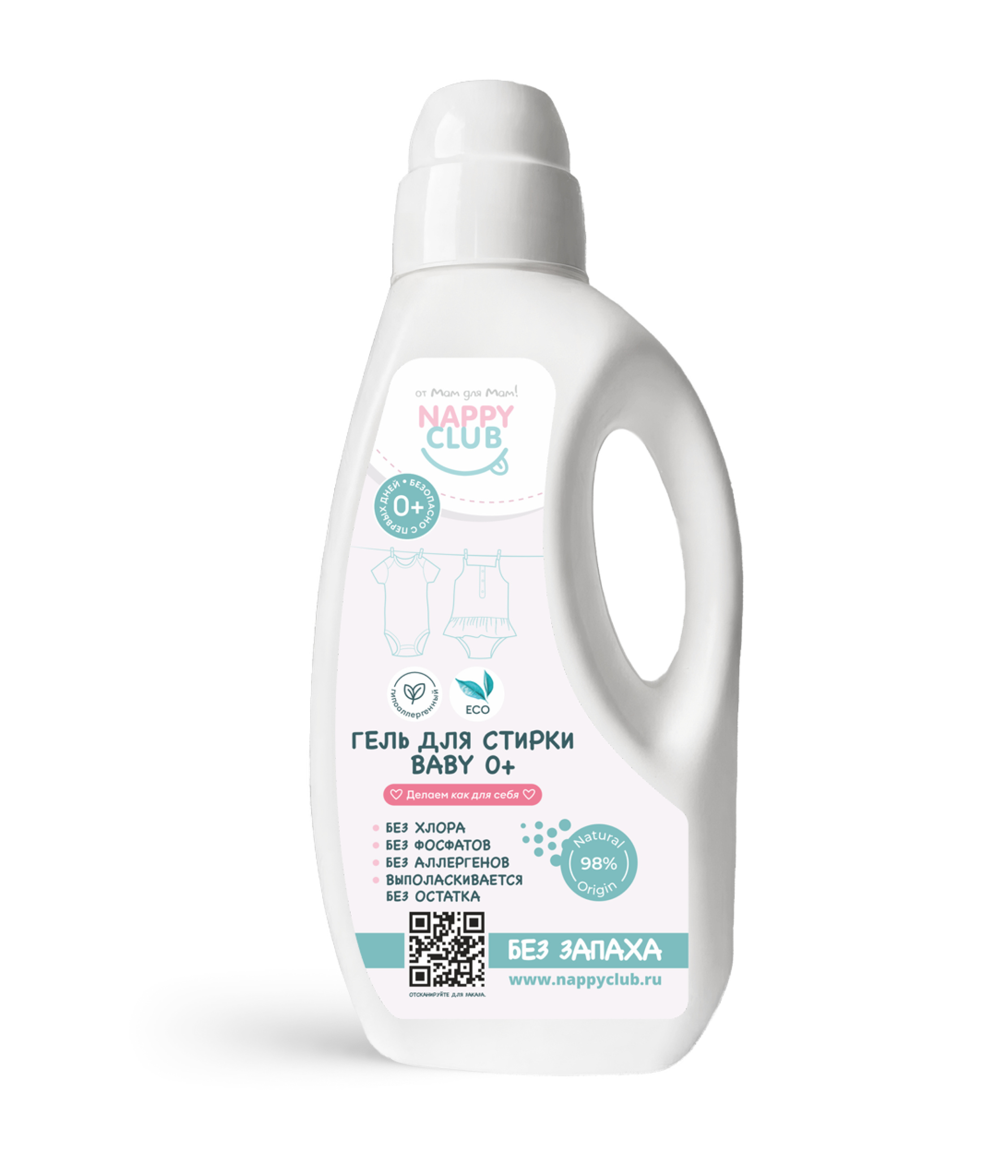 Гель для стирки детского белья Baby 0+ (без аромата) 1,5л — наш гипоаллергенный гель для стирки эффективно справляется с загрязнениями!
